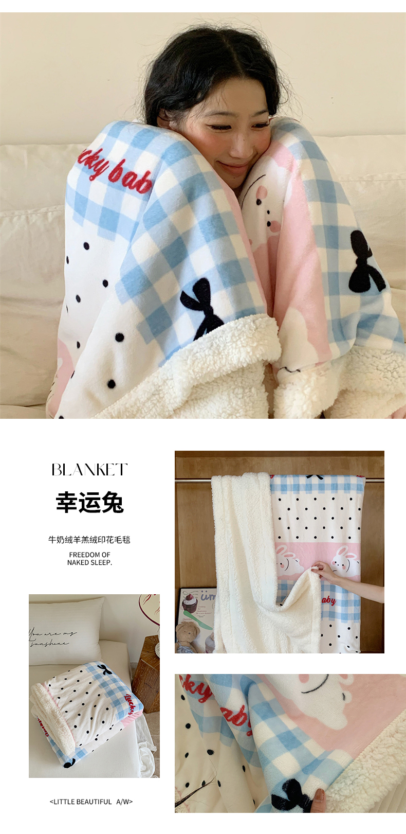 商品名称:桃喜 2024新款亲肤舒适牛奶绒羊羔绒毛毯 幸运兔