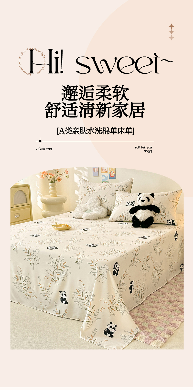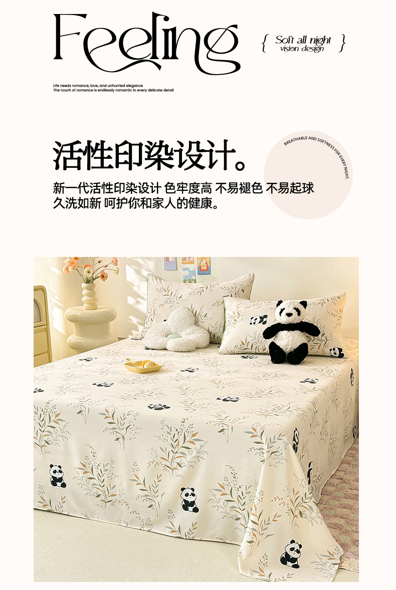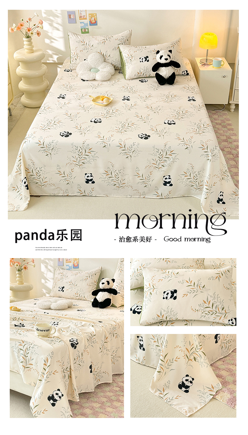 商品名称:妖妖家纺 2024新款超柔软糯水洗云朵棉印花单床单 panda乐园