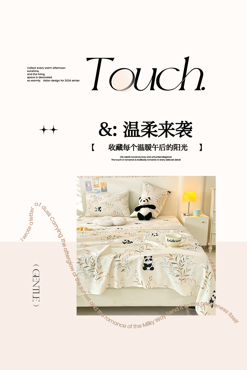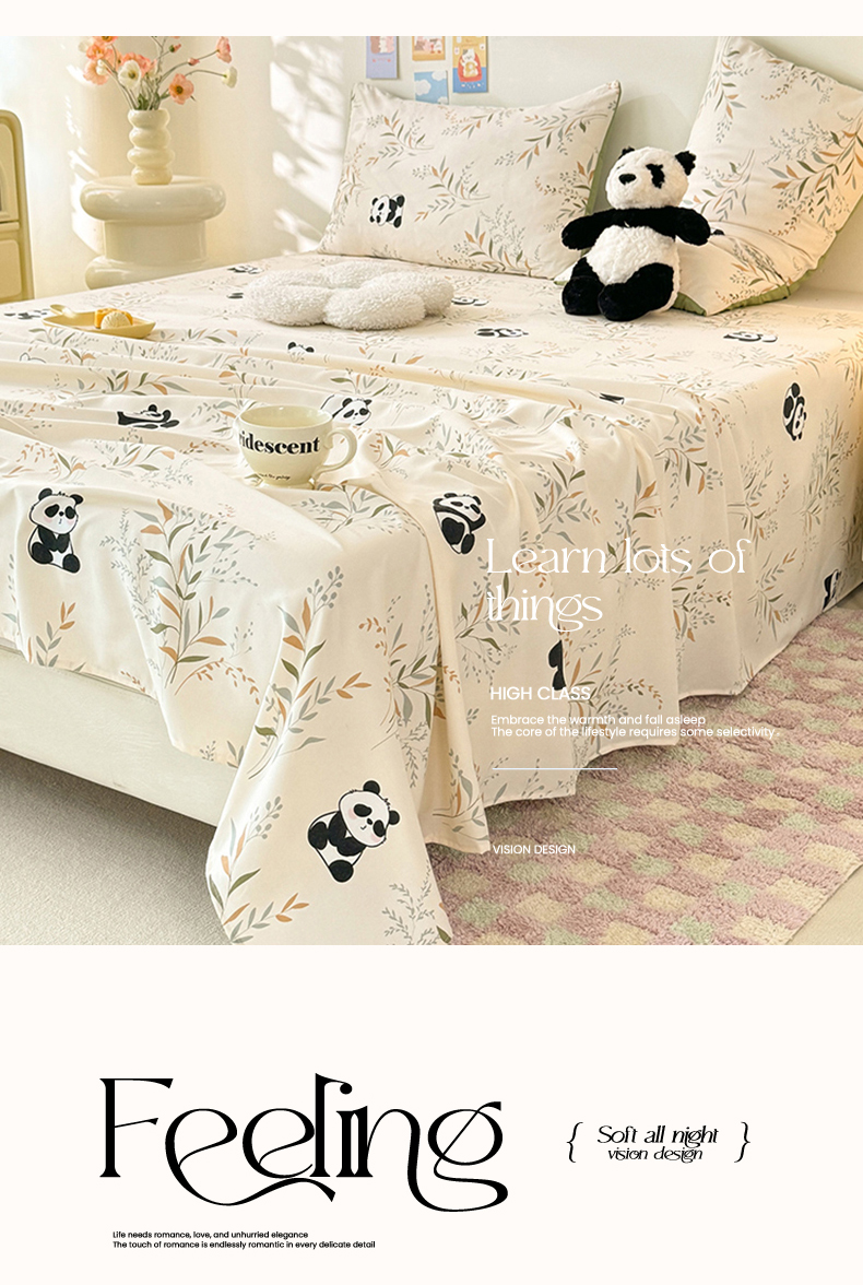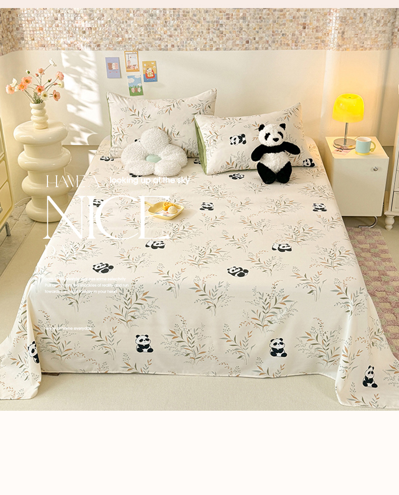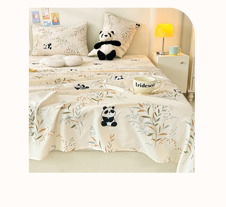 妖妖家纺 2024新款超柔软糯水洗云朵棉印花单床单 panda乐园