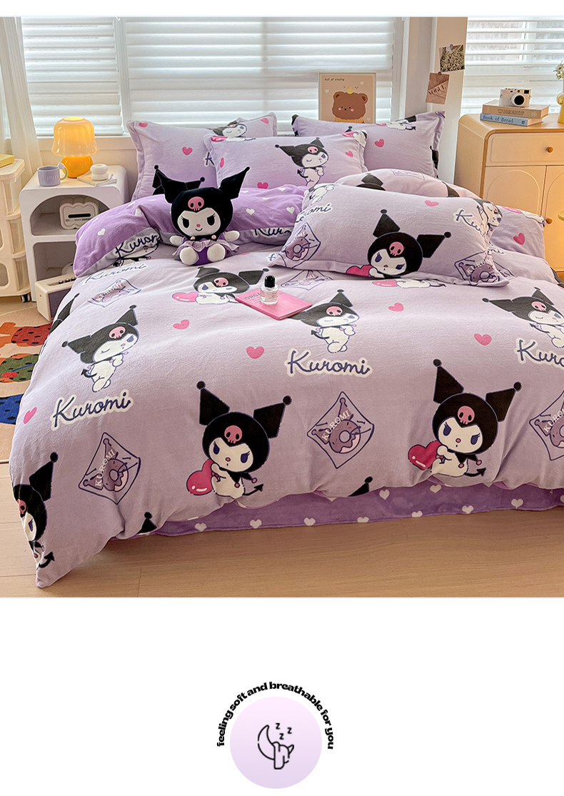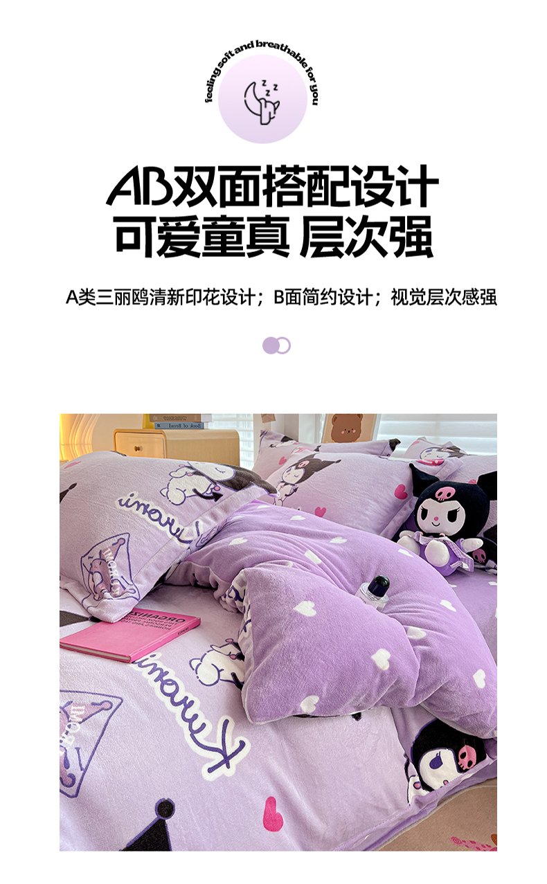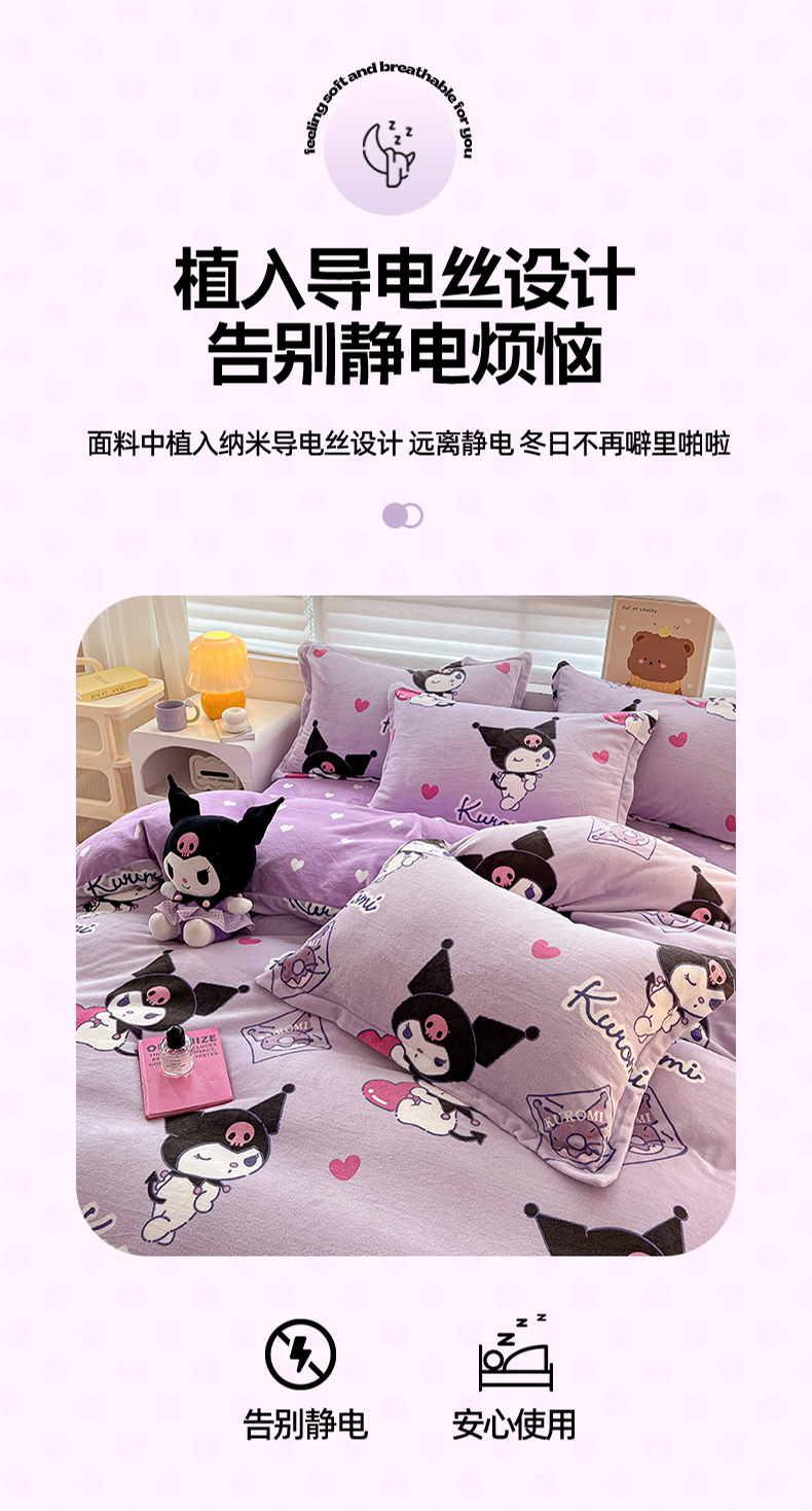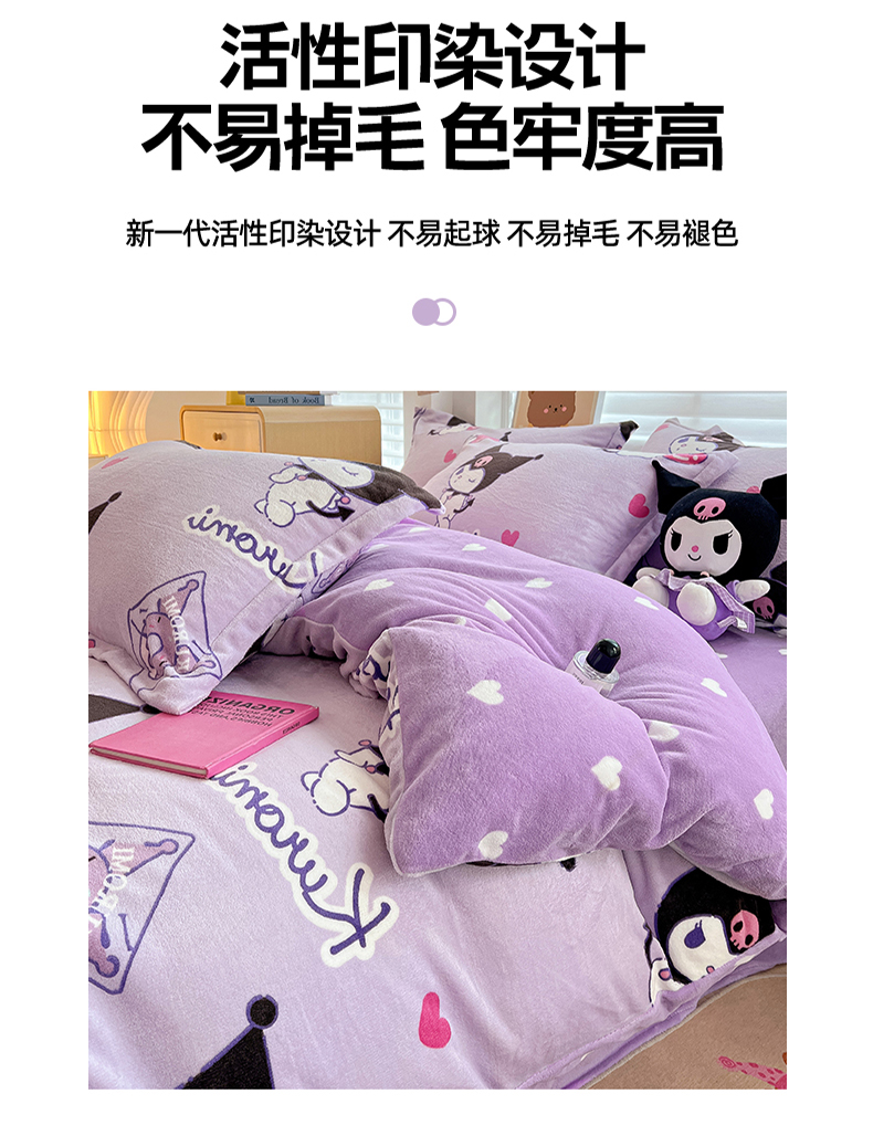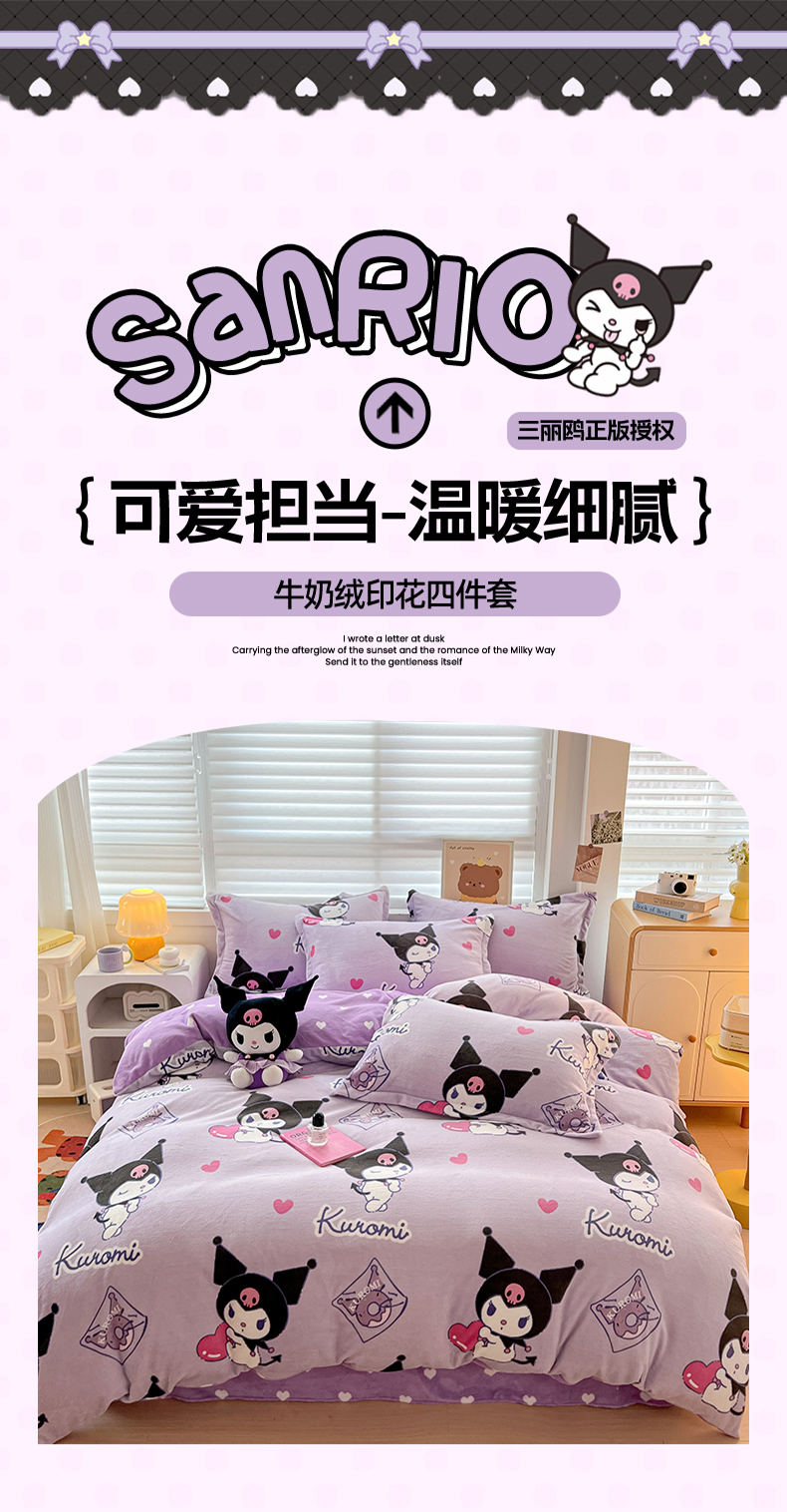 当前位置: 91家纺网 > 商品网购 > 床品套件 > 四件套 > 牛奶绒四件套 > KT猫直营店 2024新款三丽鸥库洛米牛奶绒四件套 新紫色库洛米