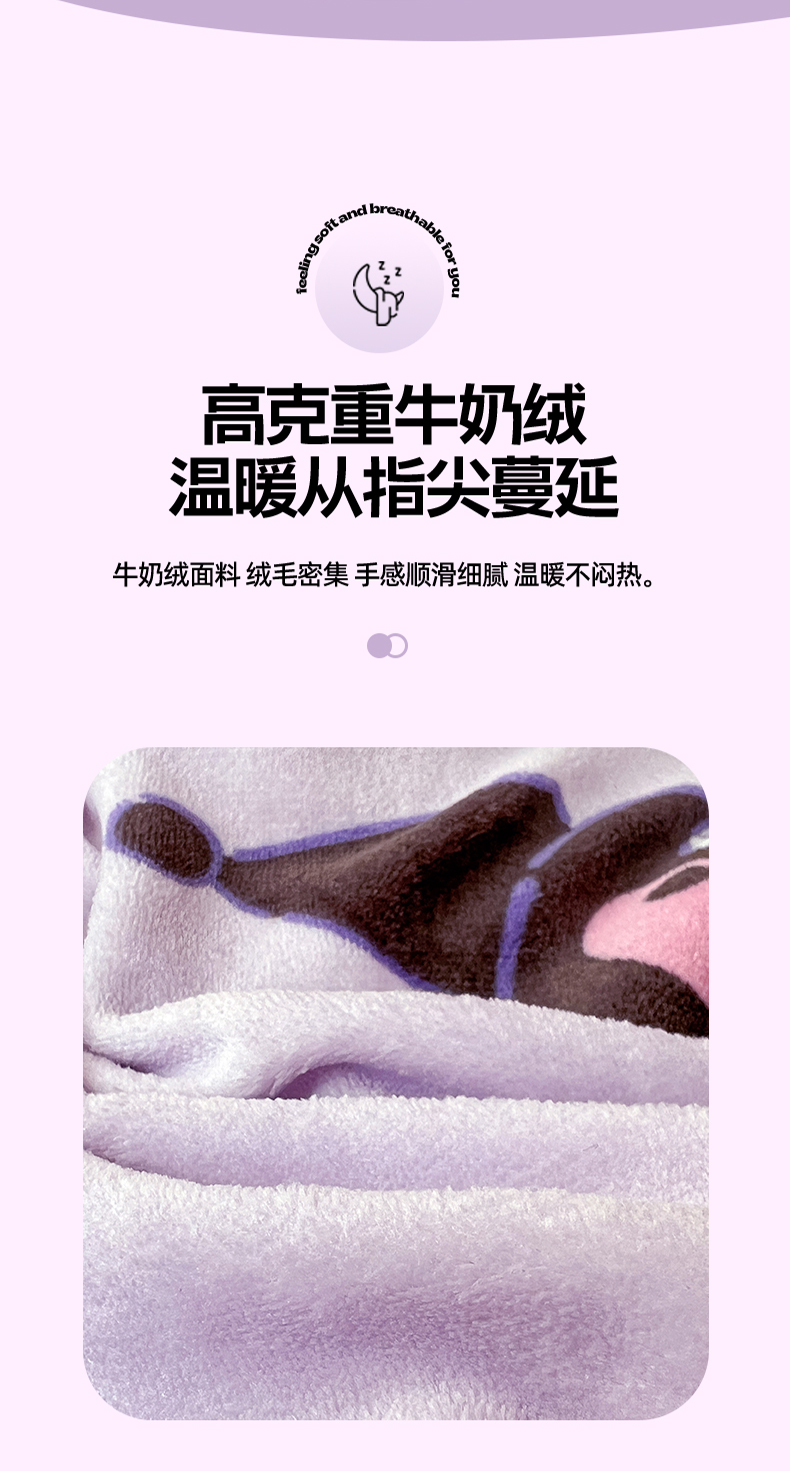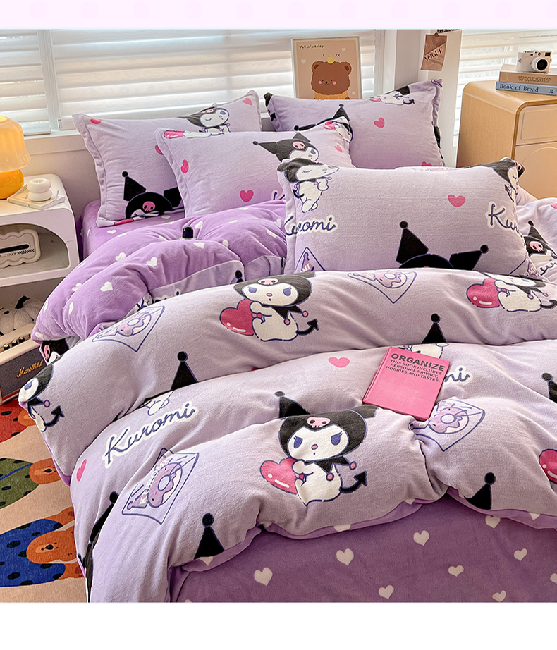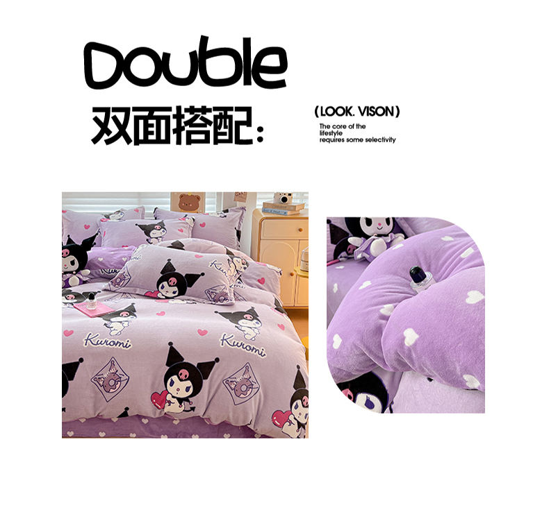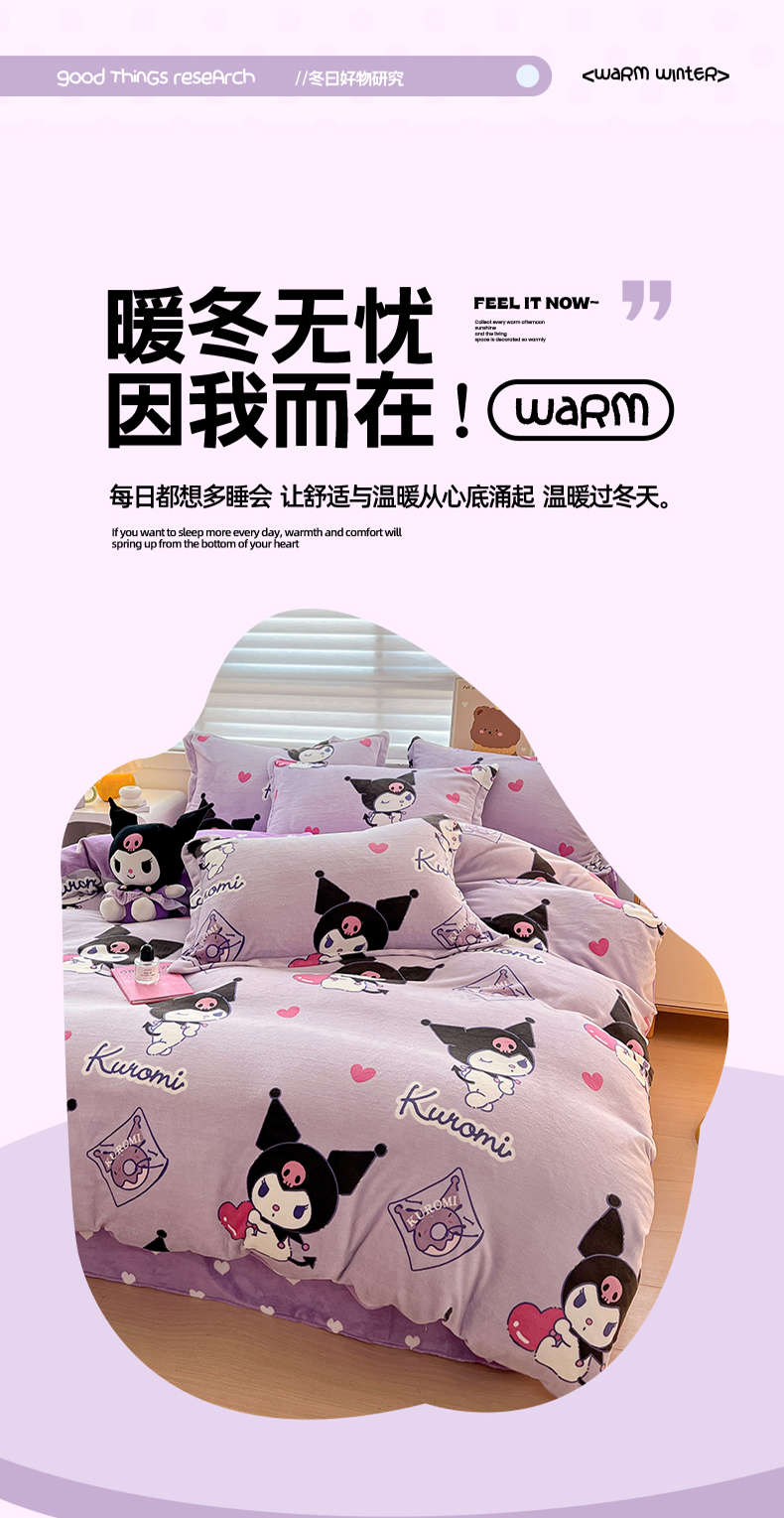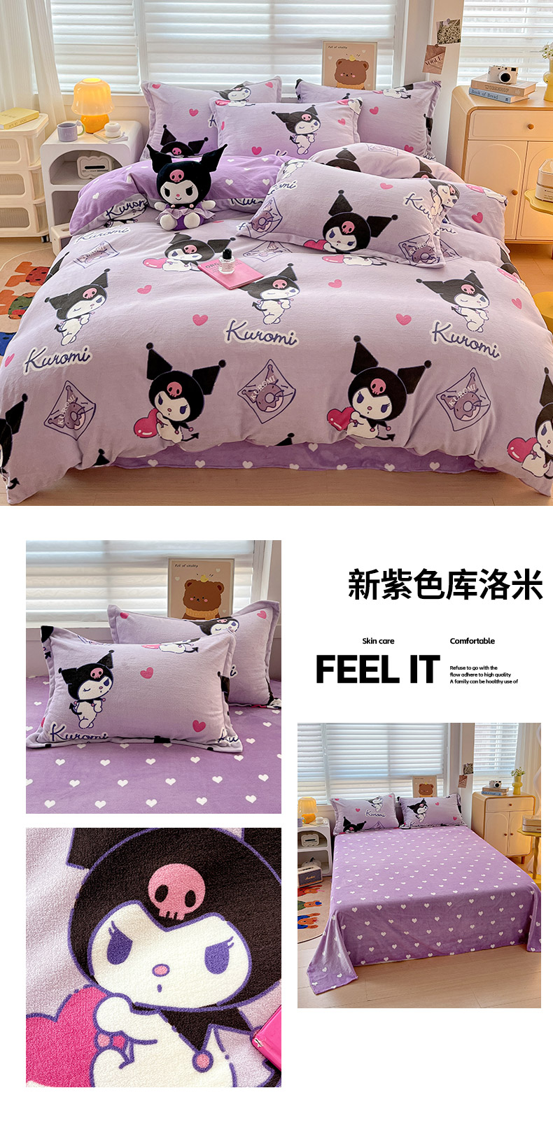 当前位置: 91家纺网 > 商品网购 > 床品套件 > 四件套 > 牛奶绒四件套 > KT猫直营店 2024新款三丽鸥库洛米牛奶绒四件套 新紫色库洛米