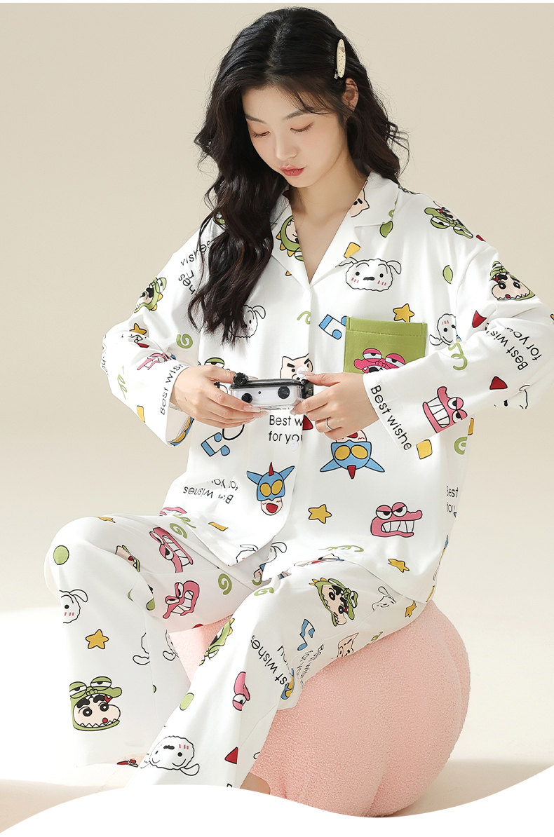 商品名称:春秋季纯棉开衫翻领睡衣少女卡通甜美长袖可外穿家居服套装 681女