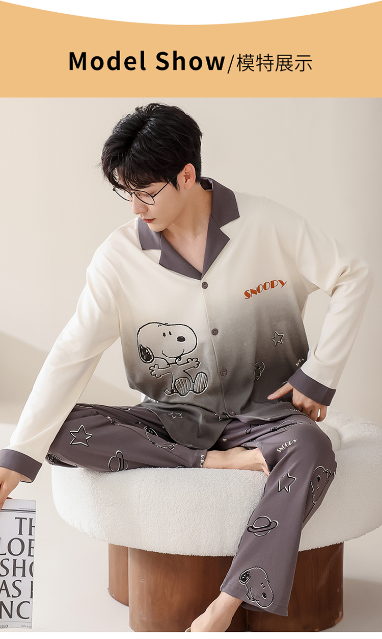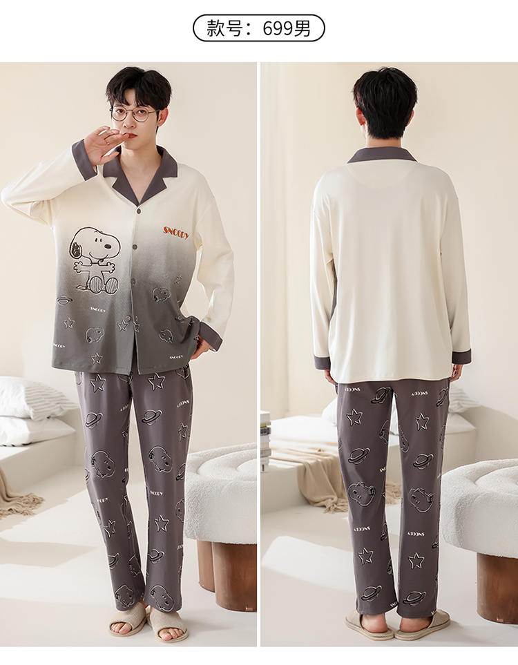 洛兰沙 春秋季纯棉开衫长袖可外穿家居服睡衣 699男
