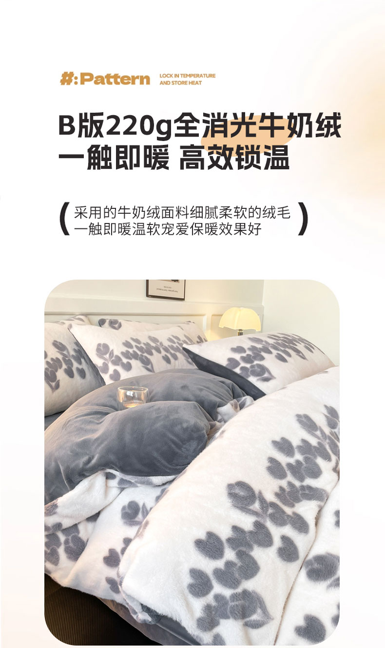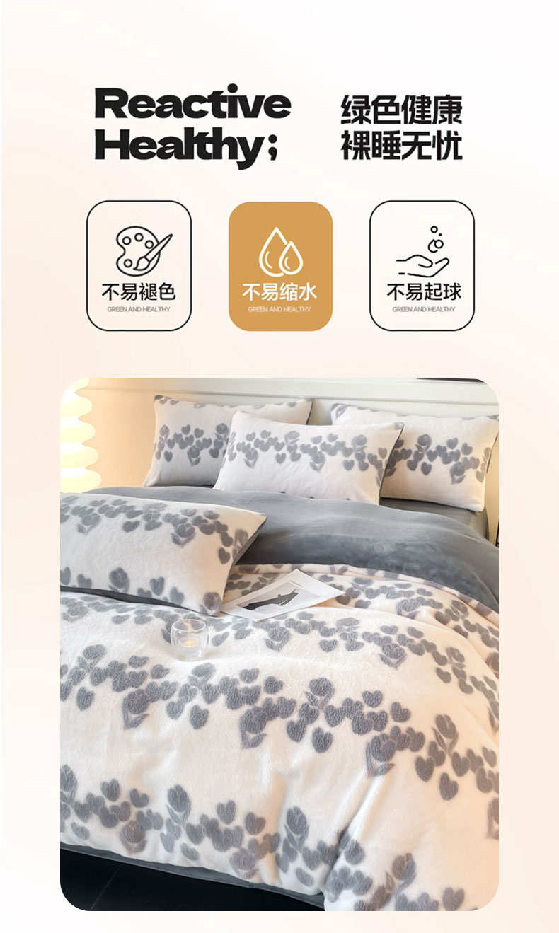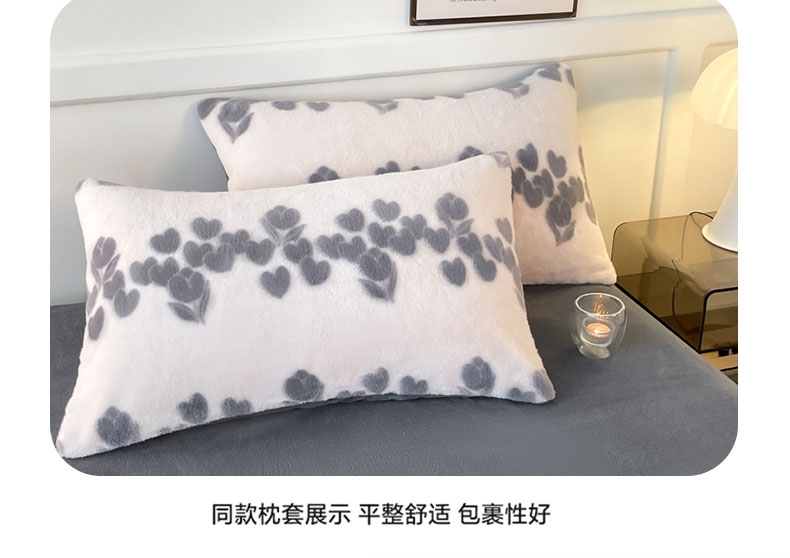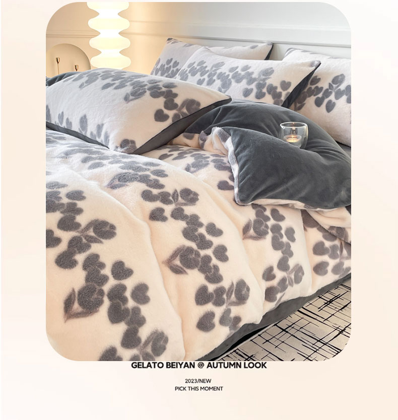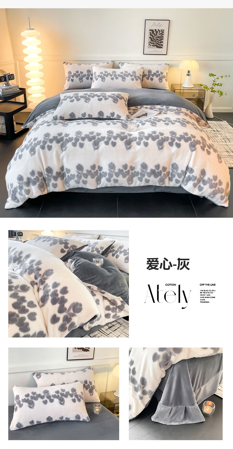 商品名称:子曰 2024新款兔绒牛奶绒烂花四件套 爱心-灰