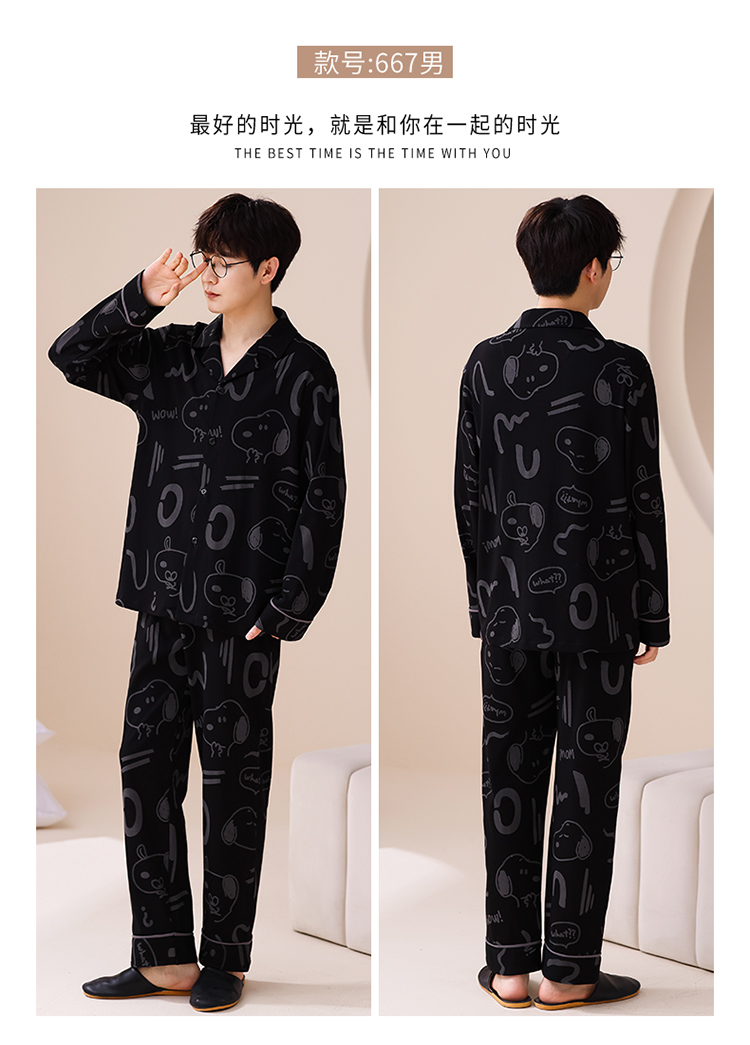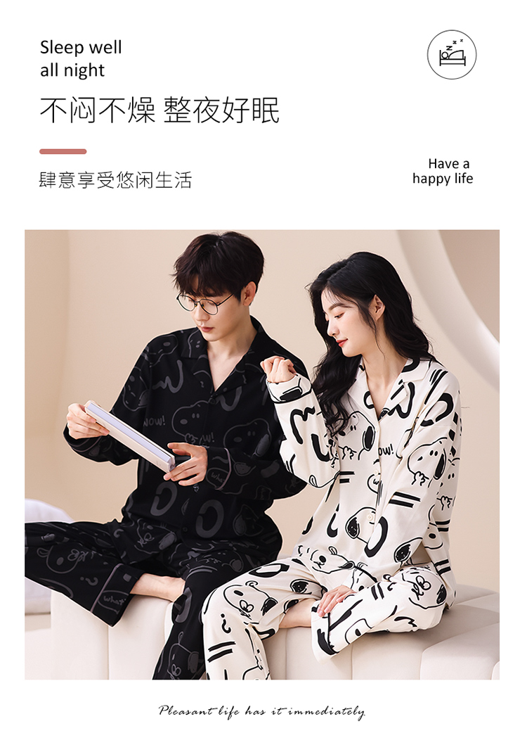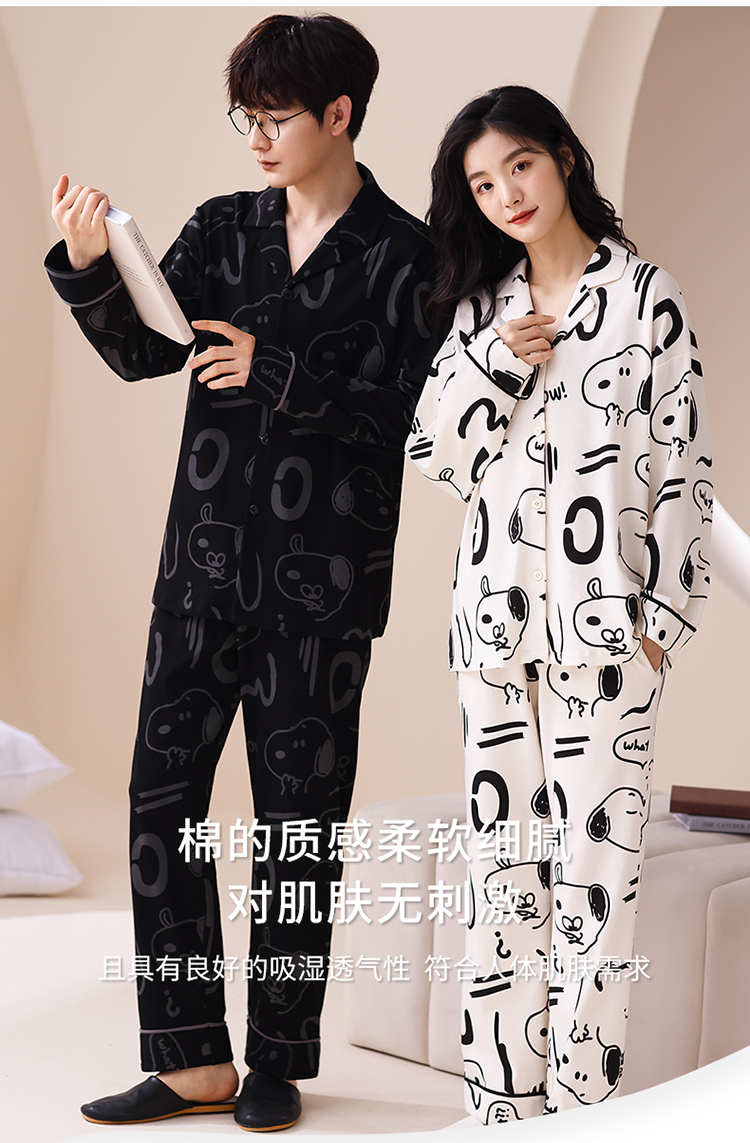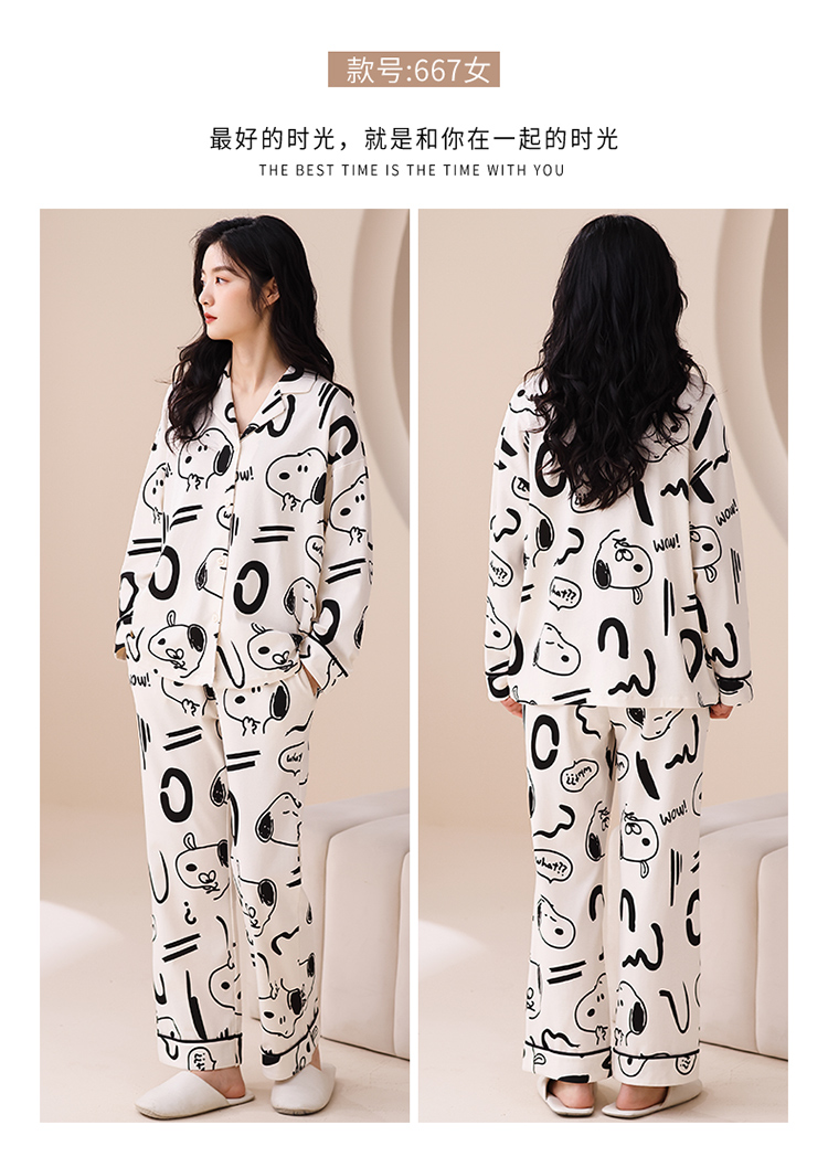 洛兰沙 春秋季纯棉开衫长袖可外穿家居服情侣套装 667女