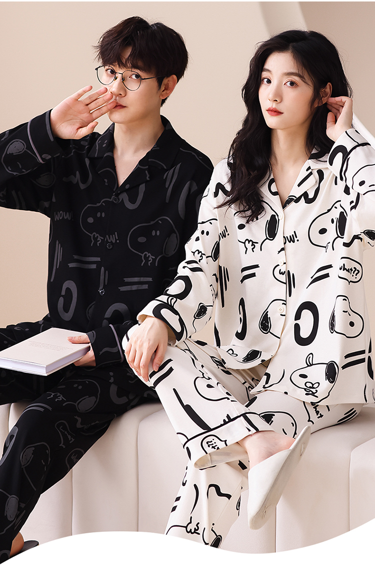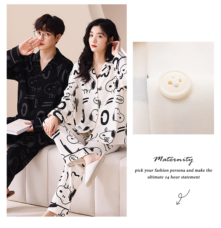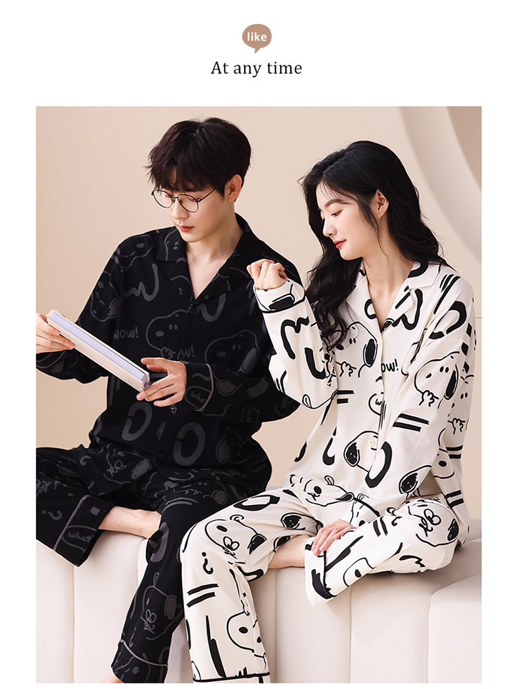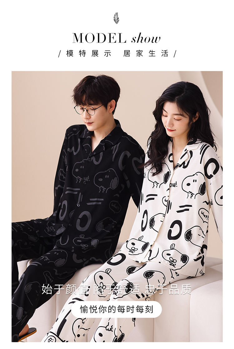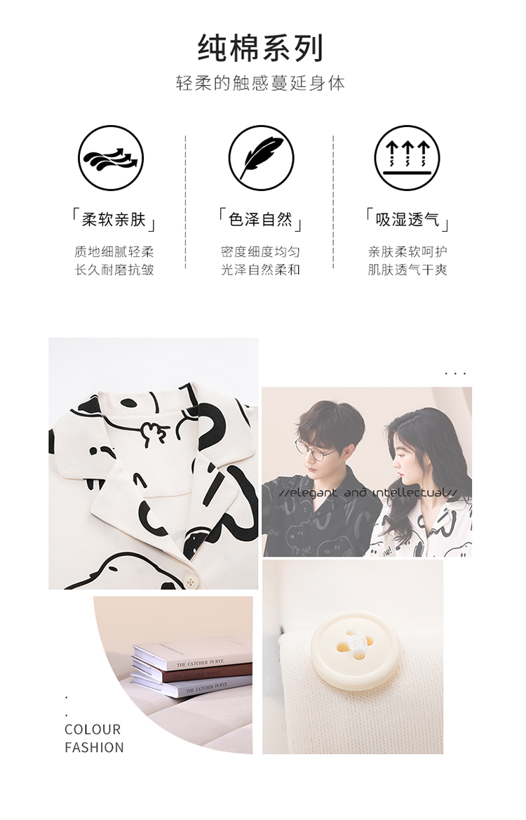 洛兰沙 春秋季纯棉开衫长袖可外穿家居服情侣套装 667女