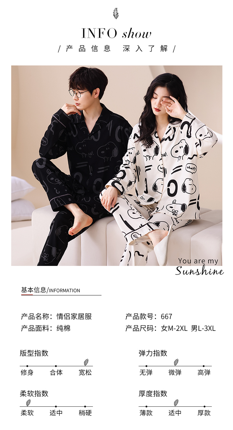 商品名称:洛兰沙 春秋季纯棉开衫长袖可外穿家居服情侣套装 667女