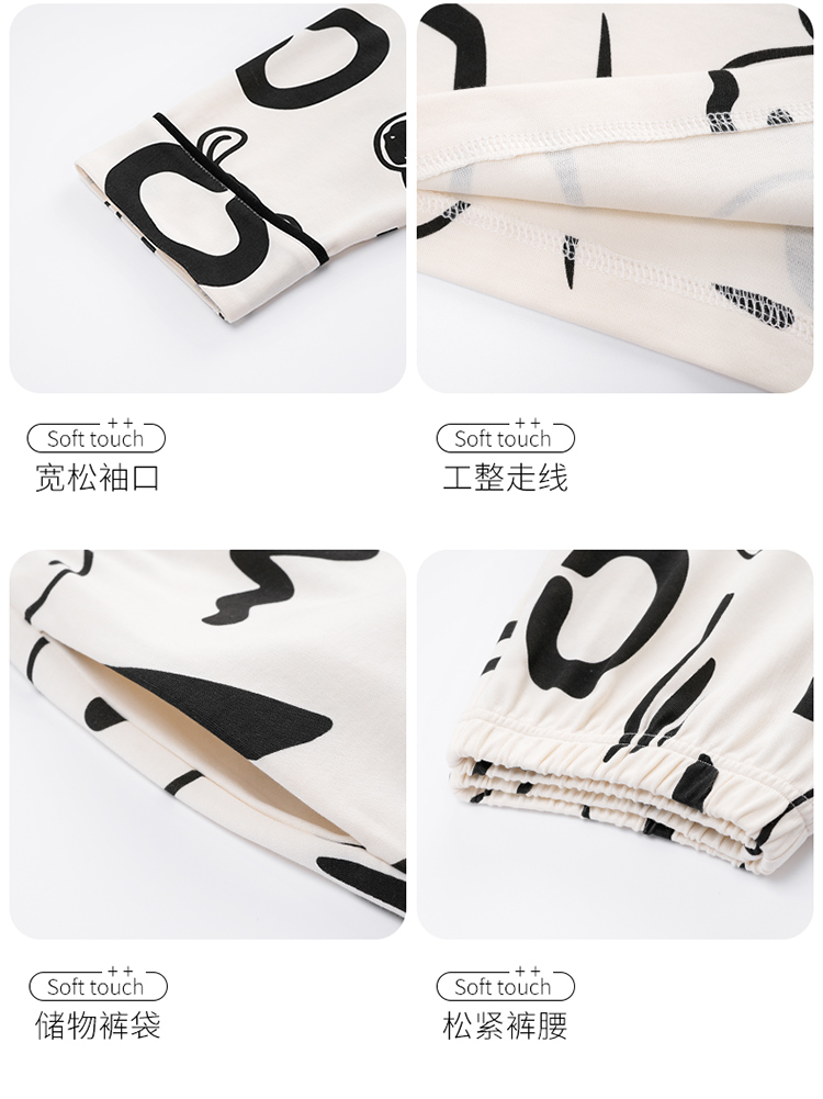 (总)洛兰沙家居馆 国风中式纯棉居家服女士睡衣 春秋季薄款休闲九分袖套装家居,花色1,花色2,花色3,花色4,花色5