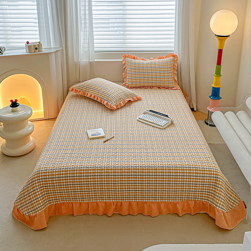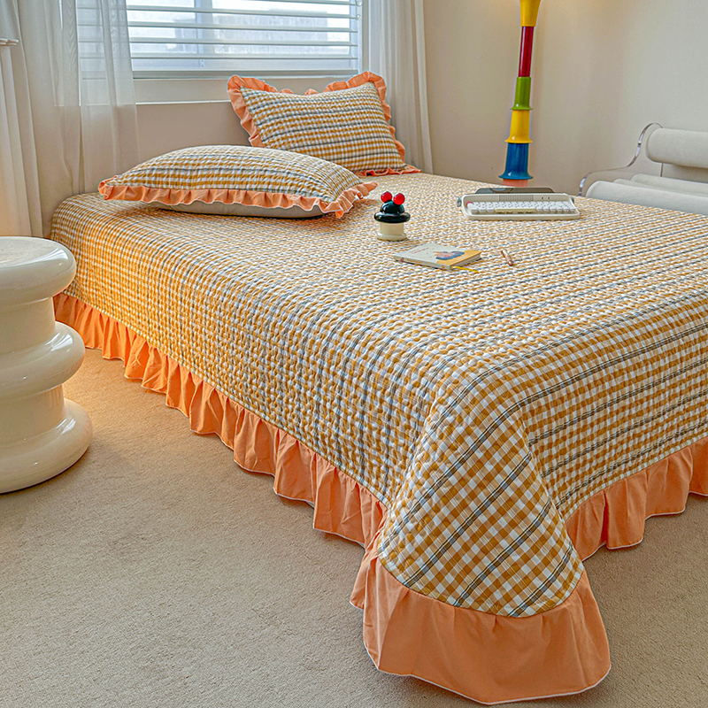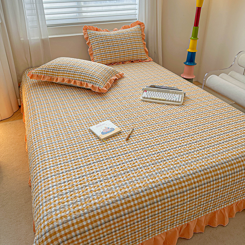 源舜 新款色织水洗夹棉床盖三件套学生三件套直播爆款 清新橙格