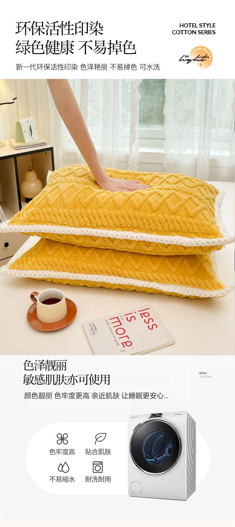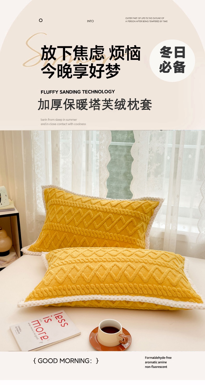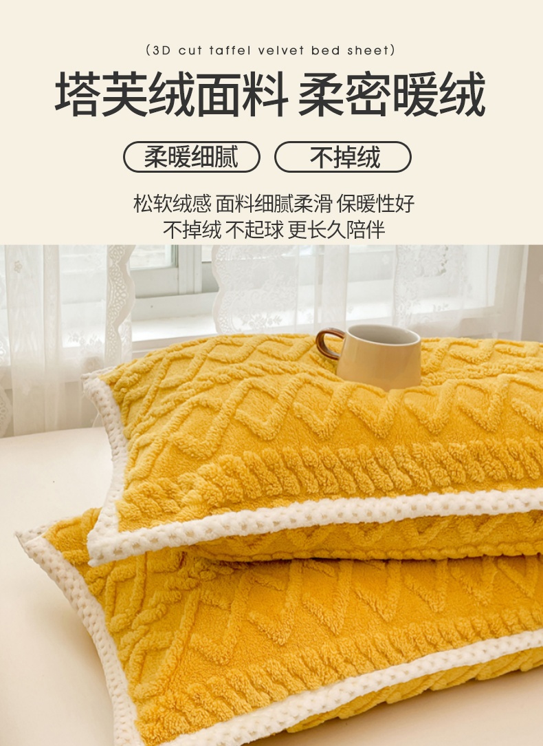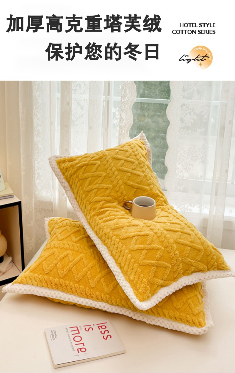 商品名称:梦舒羽 2025新款220克高克重塔芙绒枕套枕芯套宿舍枕头套单人一对装 柠檬黄