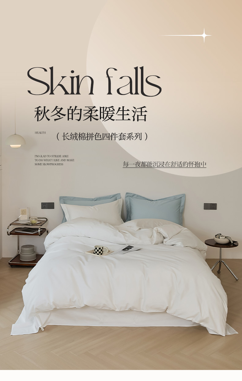 当前位置: 91家纺网 > 商品网购 > 床品套件 > 四件套 > 长绒棉四件套 > EH家居 2024新款长绒棉拼色四件套系列--英文版 象牙白