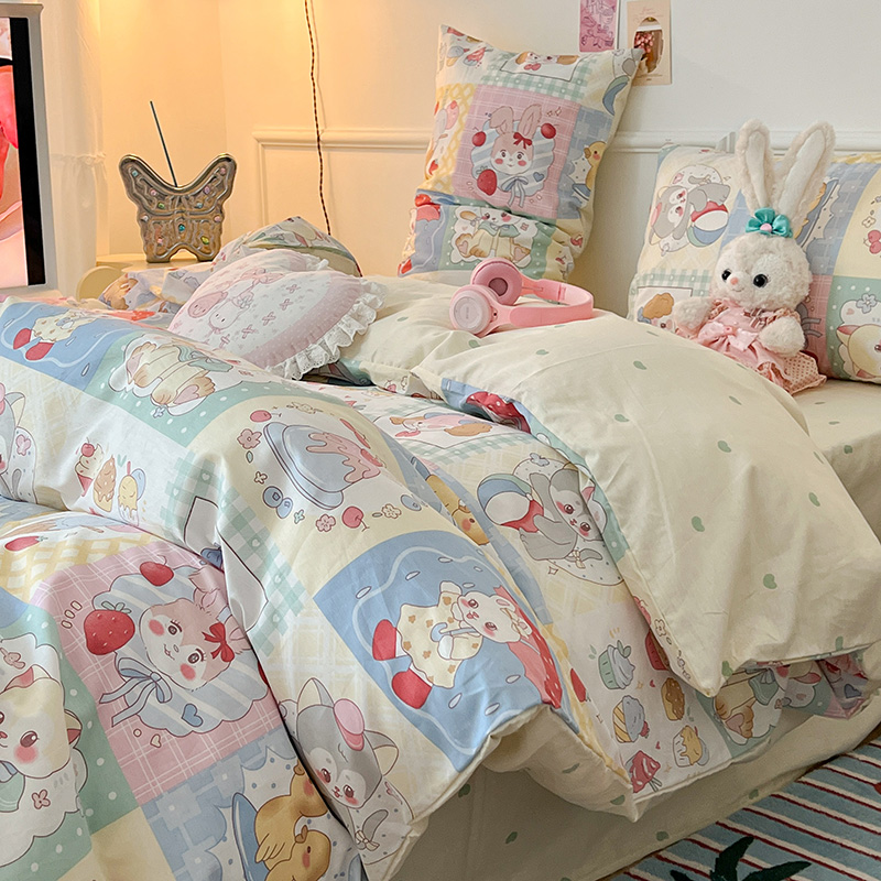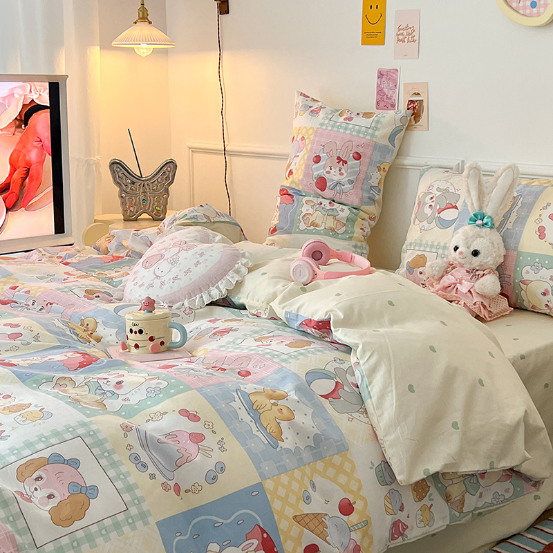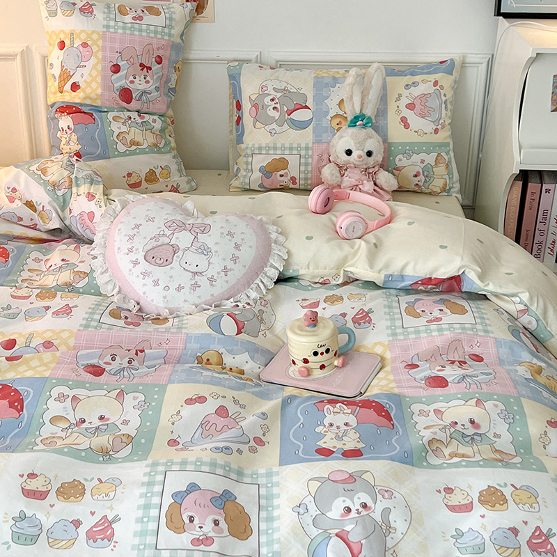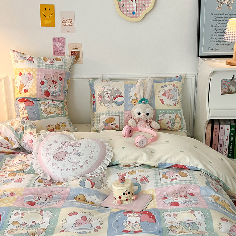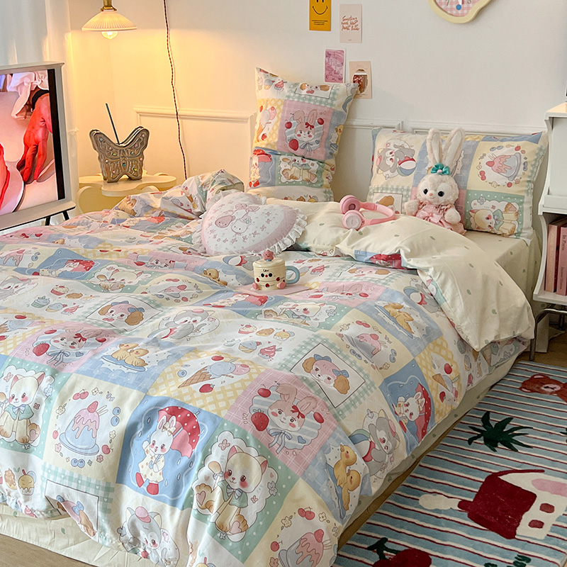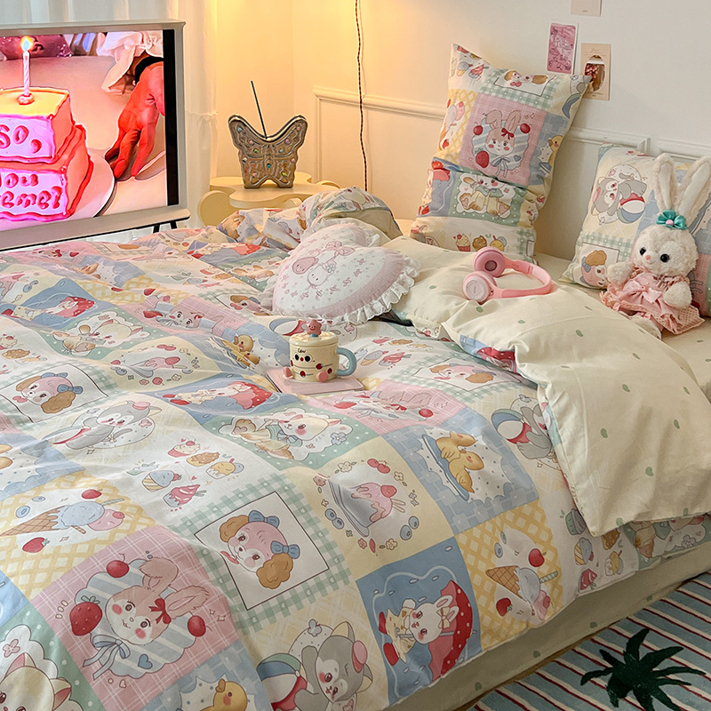 (总)昔可 2023新款学生季卡通普通款四件套,彩色气球熊,彩条恐龙,憨憨熊,花蜜小兔,蘑菇兔,圈圈草莓,蔬菜小兔,郁金香小萌狗