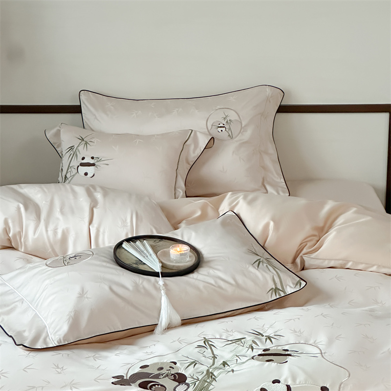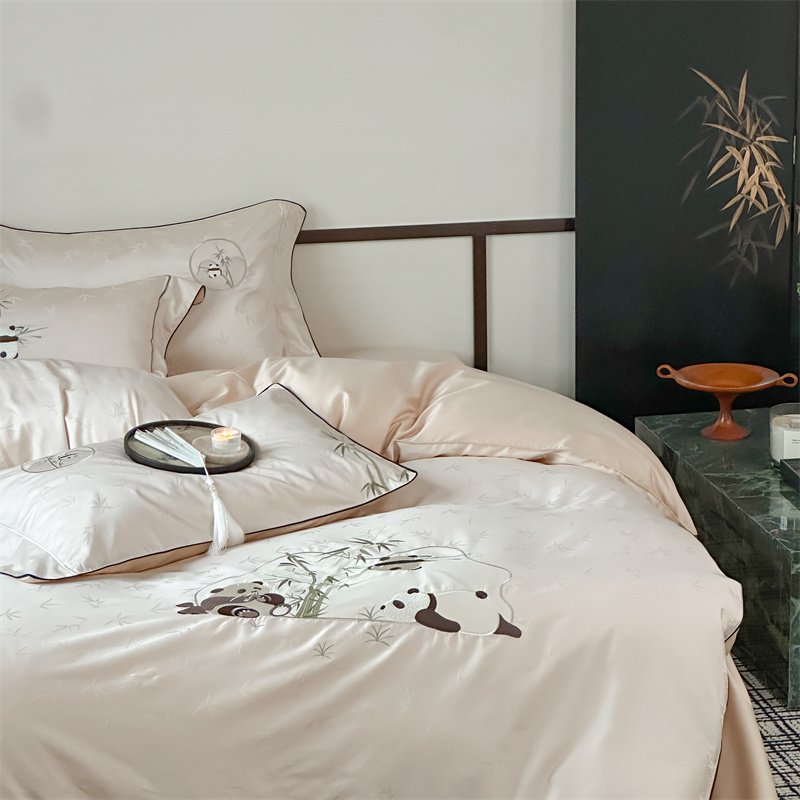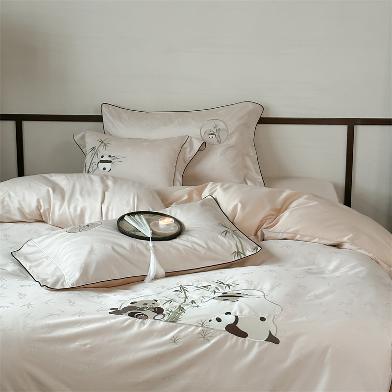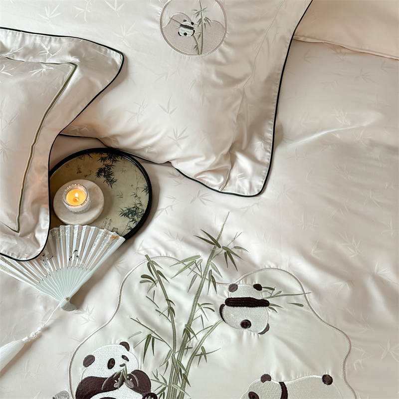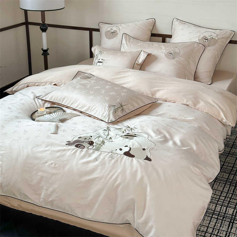 商品名称:西西家居 2024新款高定国风新中式提花四件套-抱竹熊猫(送含芯抱枕) 抱竹熊猫-米色