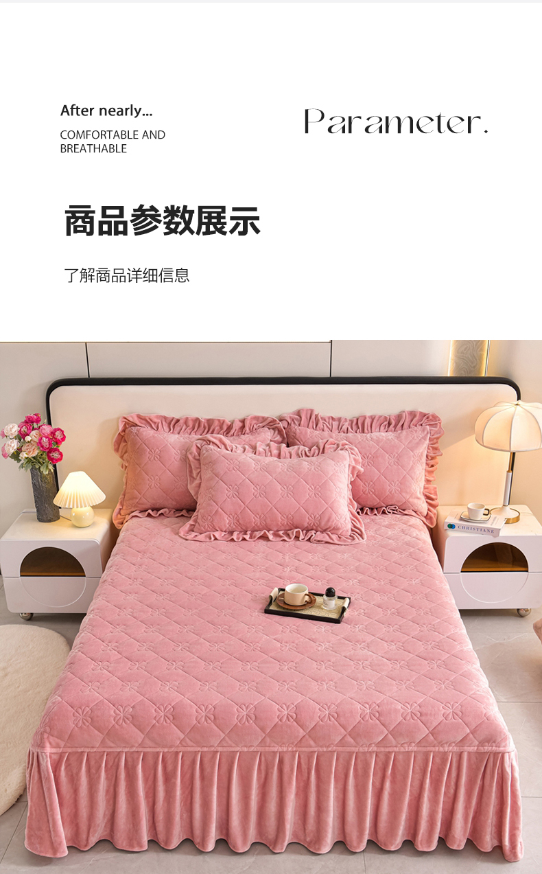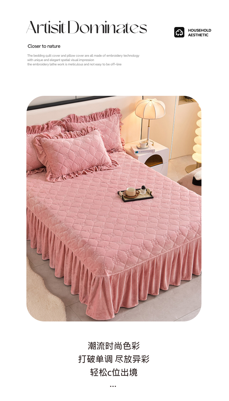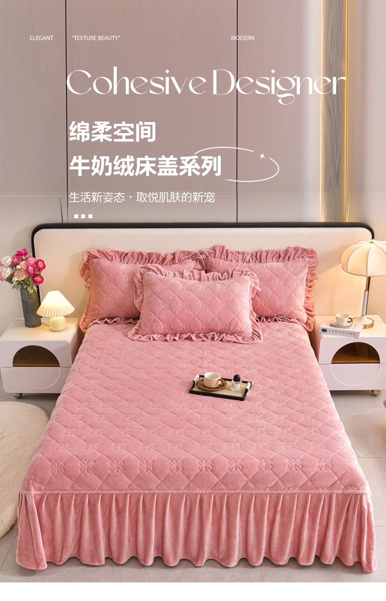 馨梦缘 2025直播爆款8.5斤牛奶绒四件套加厚保暖床裙金貂绒 静若繁花 粉,静若繁花 粉