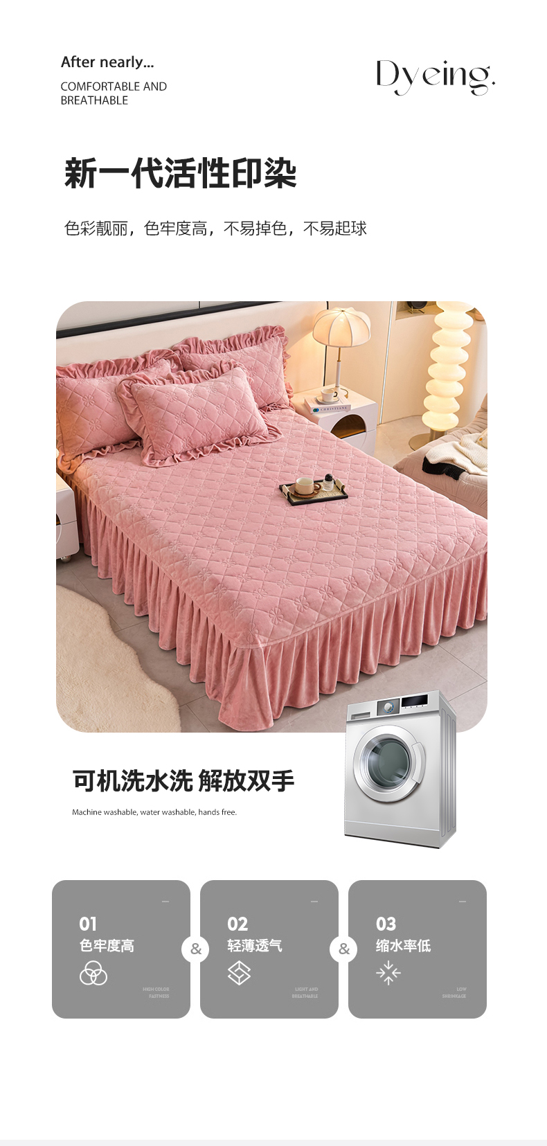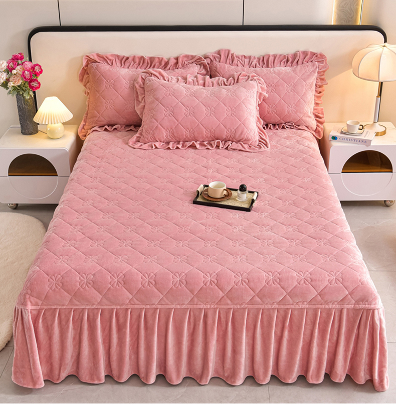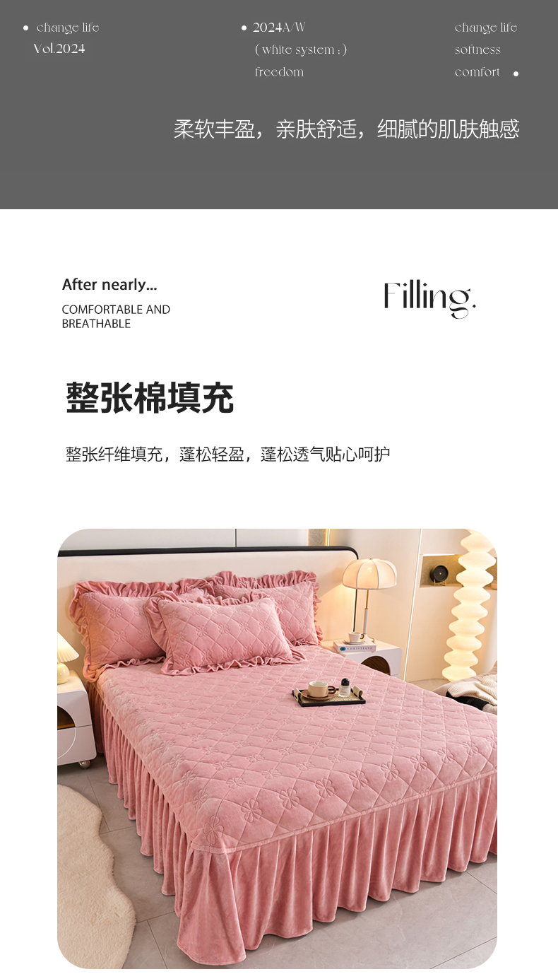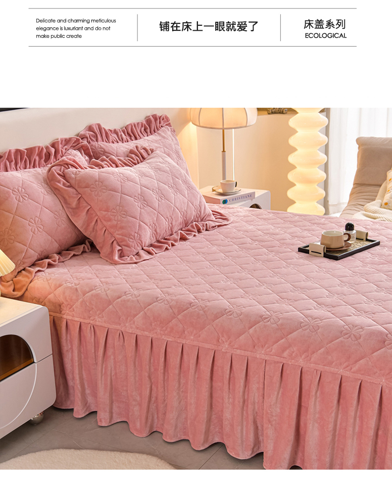 馨梦缘 2025直播爆款8.5斤牛奶绒四件套加厚保暖床裙金貂绒 静若繁花 粉,静若繁花 粉