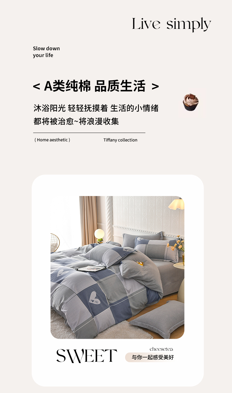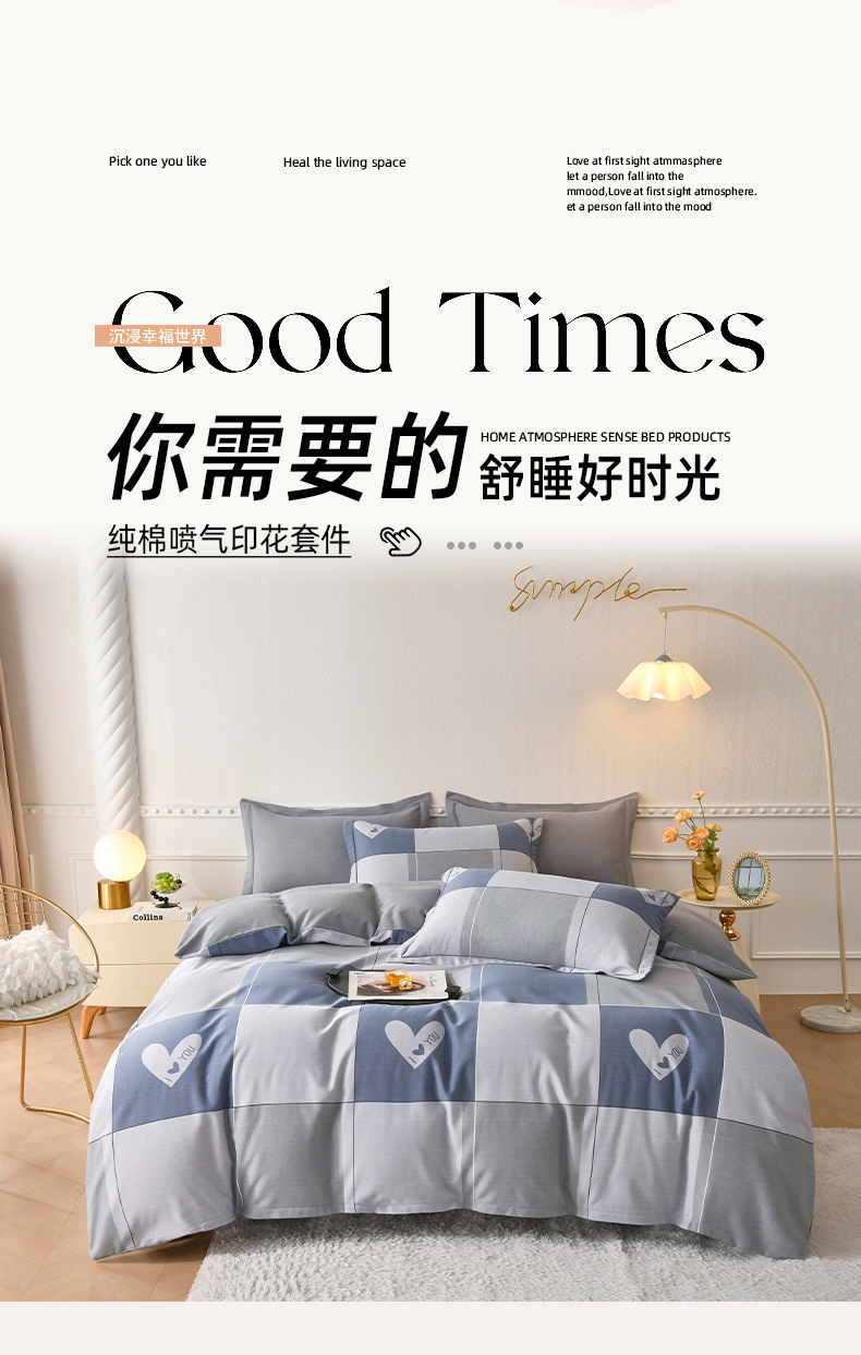 当前位置: 91家纺网 > 商品网购 > 床品套件 > 四件套 > 全棉普通四件套 > 优尚家纺 2025新款全棉磨毛纯棉喷气印花清新轻奢款四件套 轻奢款-蓝梦心格