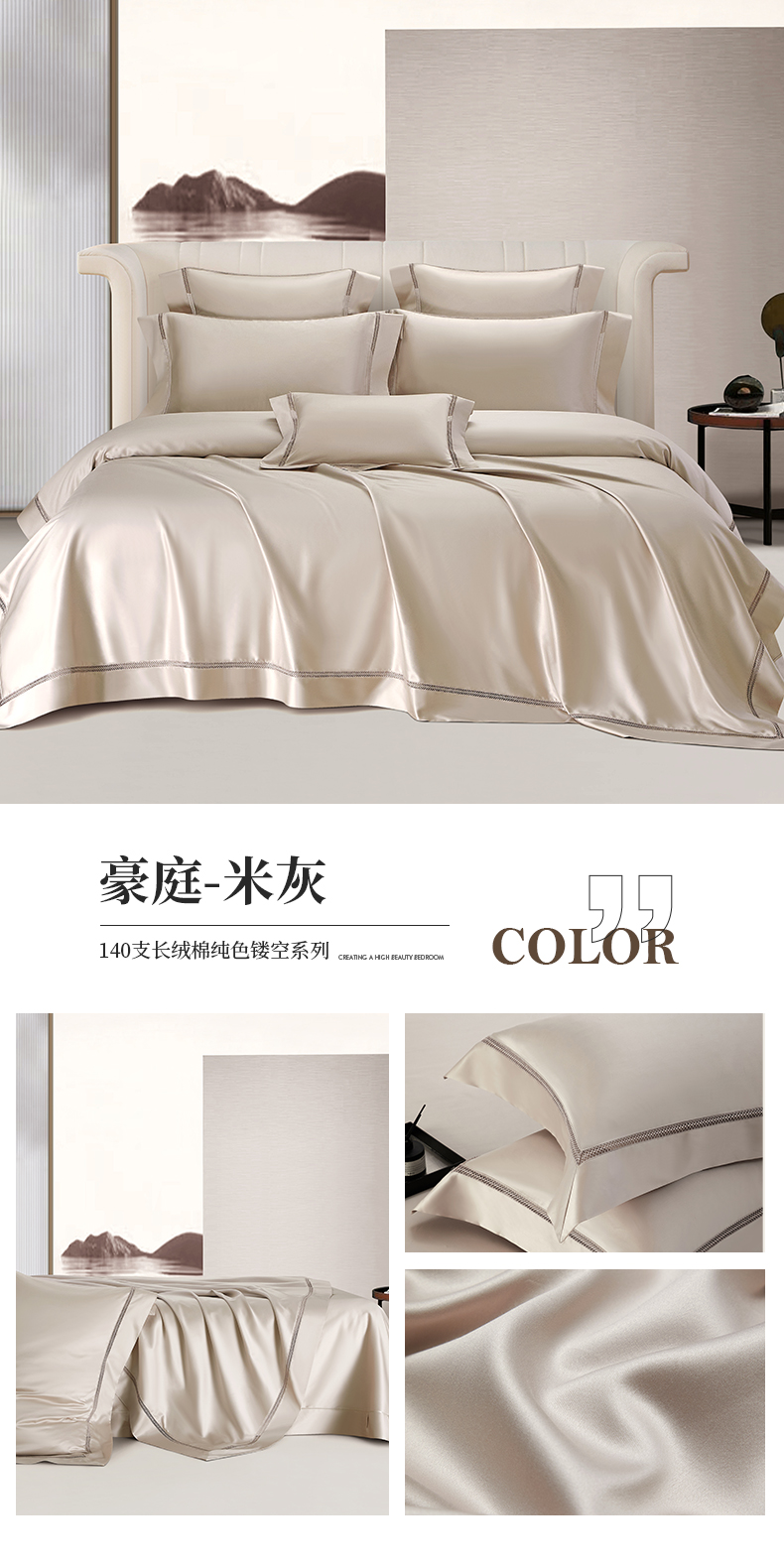 【2024】140支140S全棉纯色四件套镂空款可选多件套可定制 豪庭摩卡