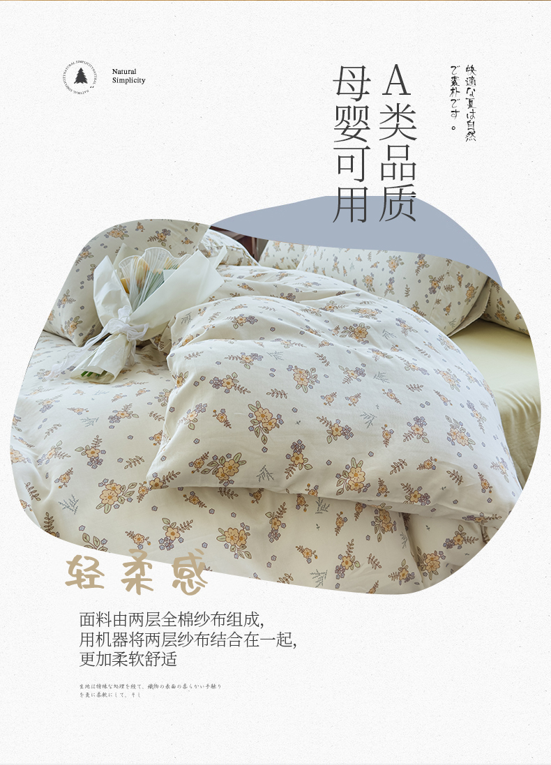 商品名称:(总)耀悦家纺 2024新款A类全棉双层纱四件套