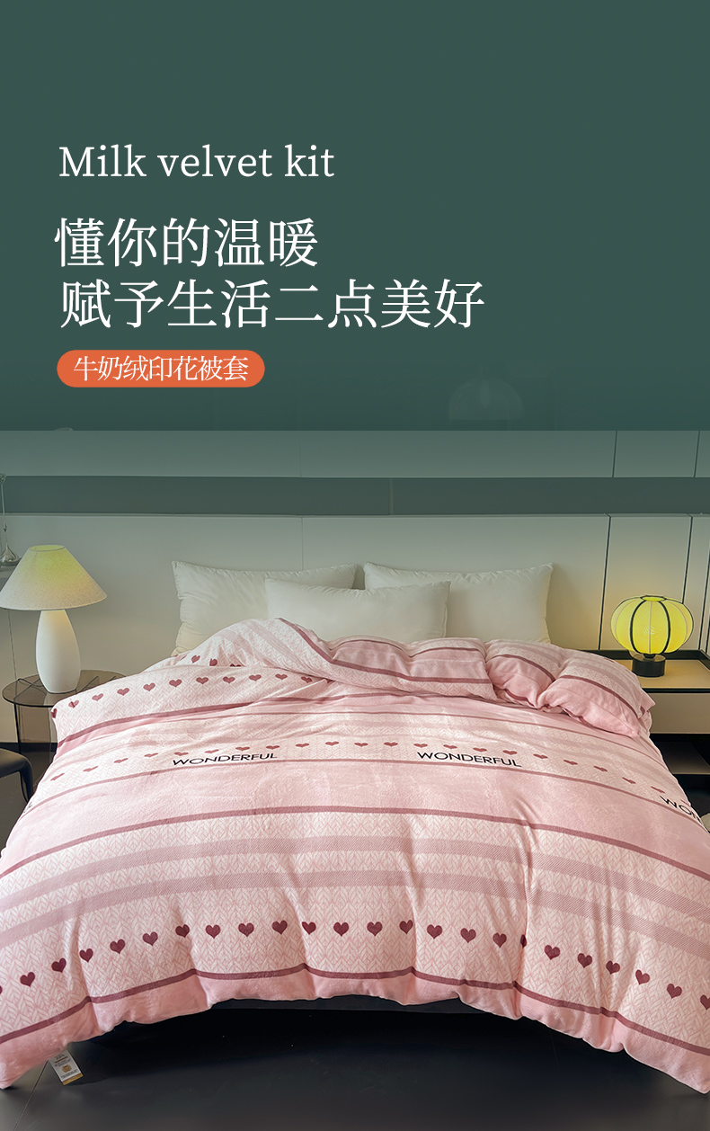商品名称:董韵家纺 2025新款高克重全消光牛奶绒法莱绒金貂绒印花单品被套床裙四件套(提供买家秀)心向往之
