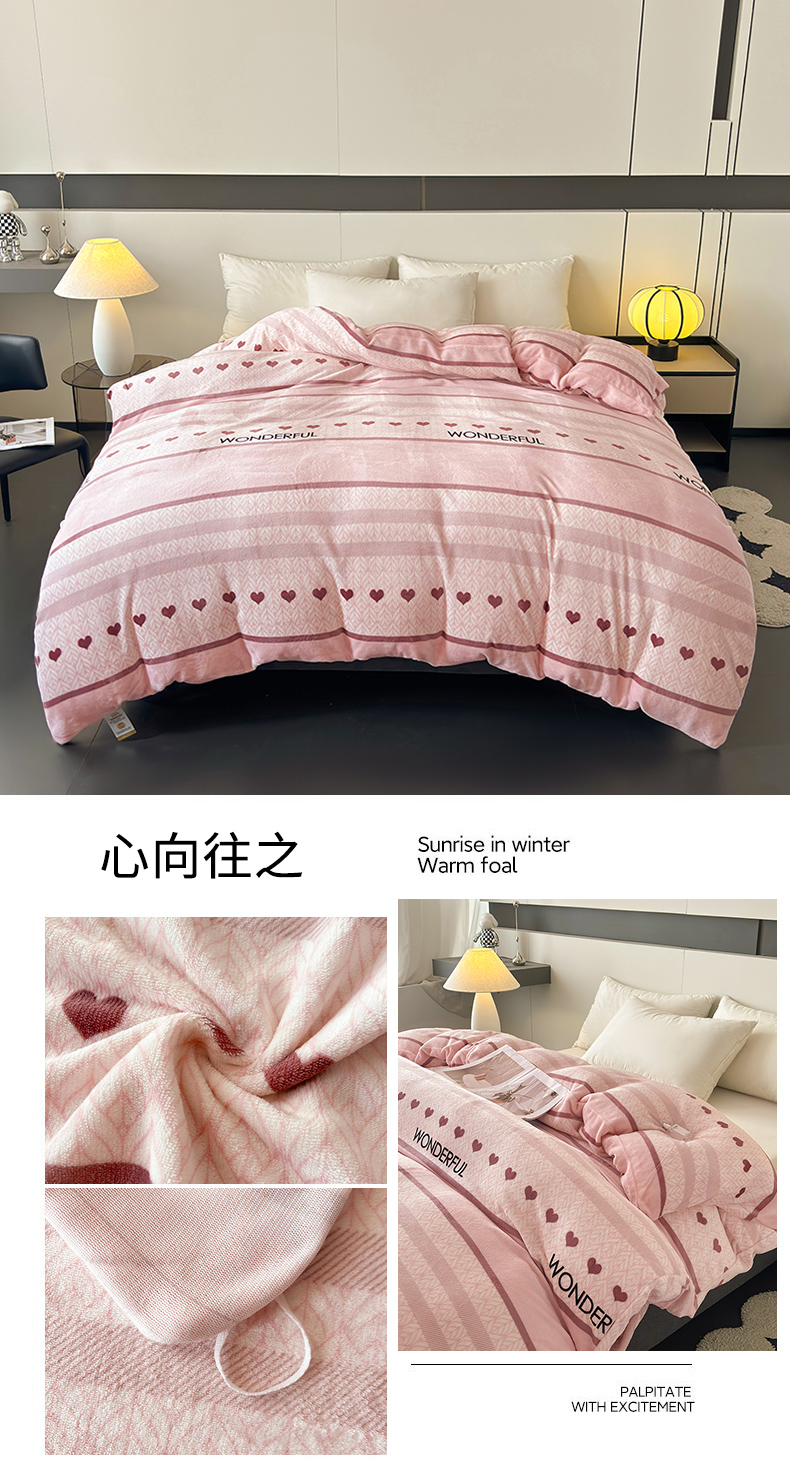 董韵家纺 2025新款高克重全消光牛奶绒法莱绒金貂绒印花单品被套床裙四件套(提供买家秀)心向往之
