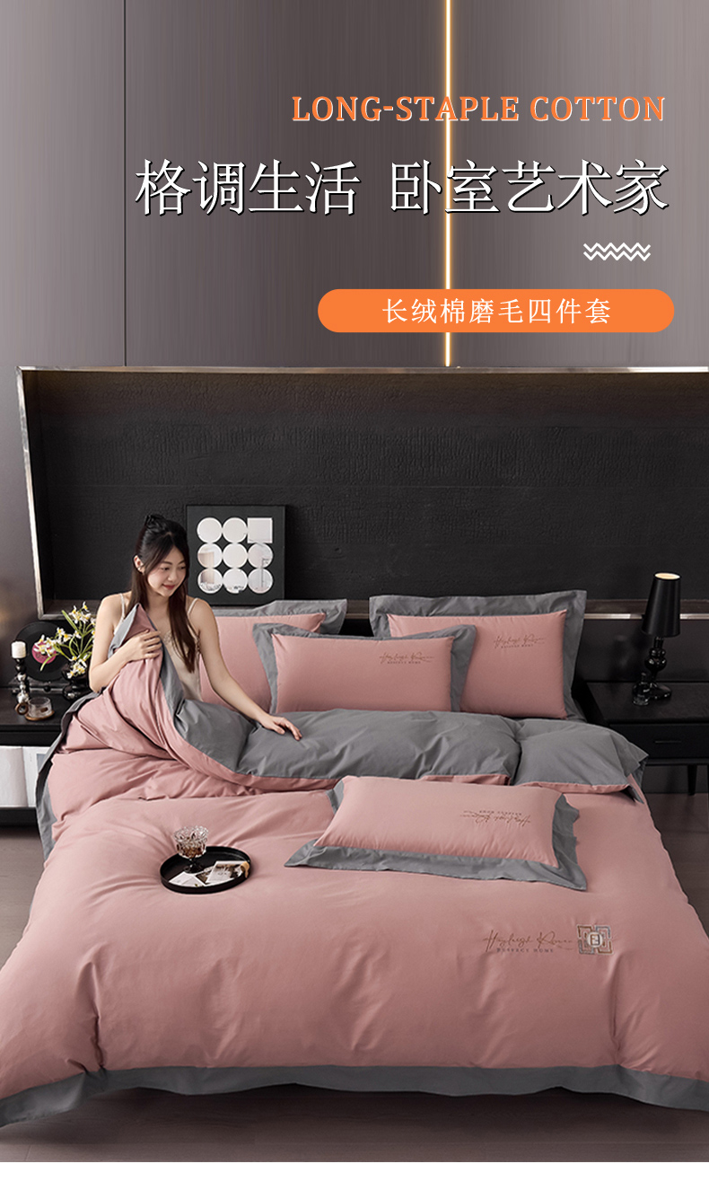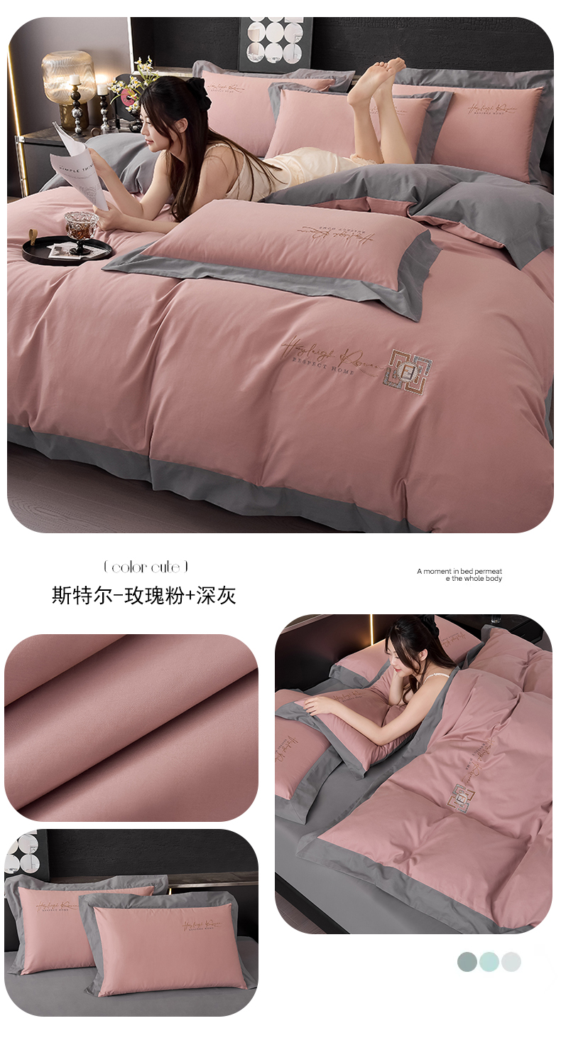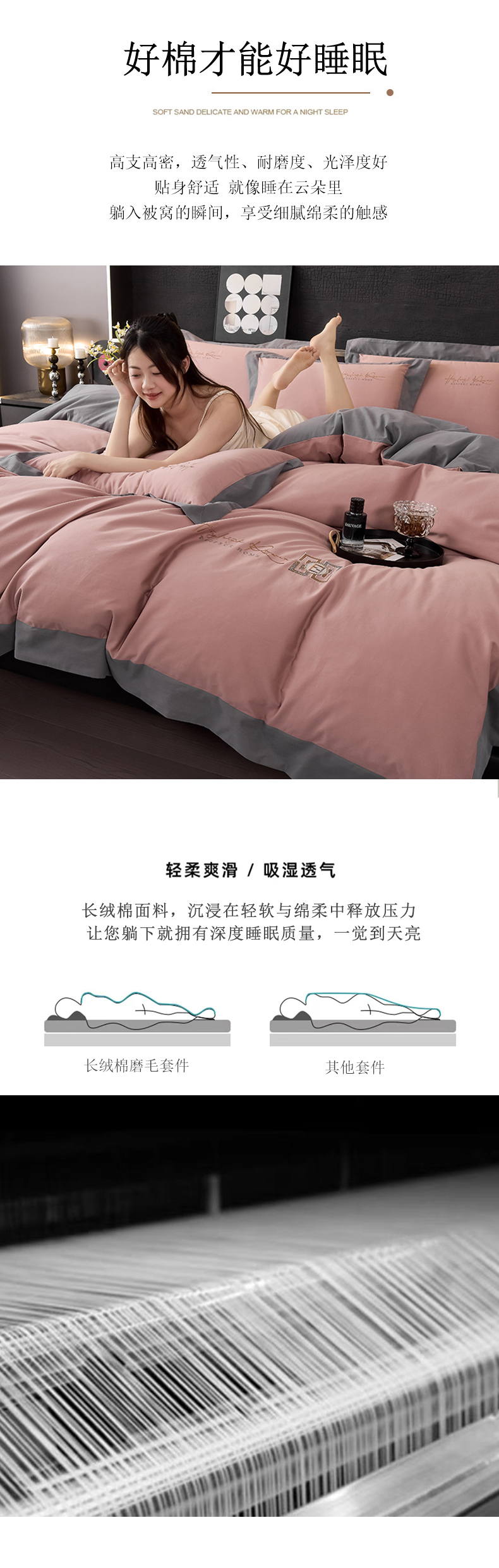 当前位置: 91家纺网 > 商品网购 > 床品套件 > 四件套 > 长绒棉四件套 > 瑞驰家纺 2024新款长绒棉磨毛四件套-斯特尔 斯特尔-玫瑰粉+深灰