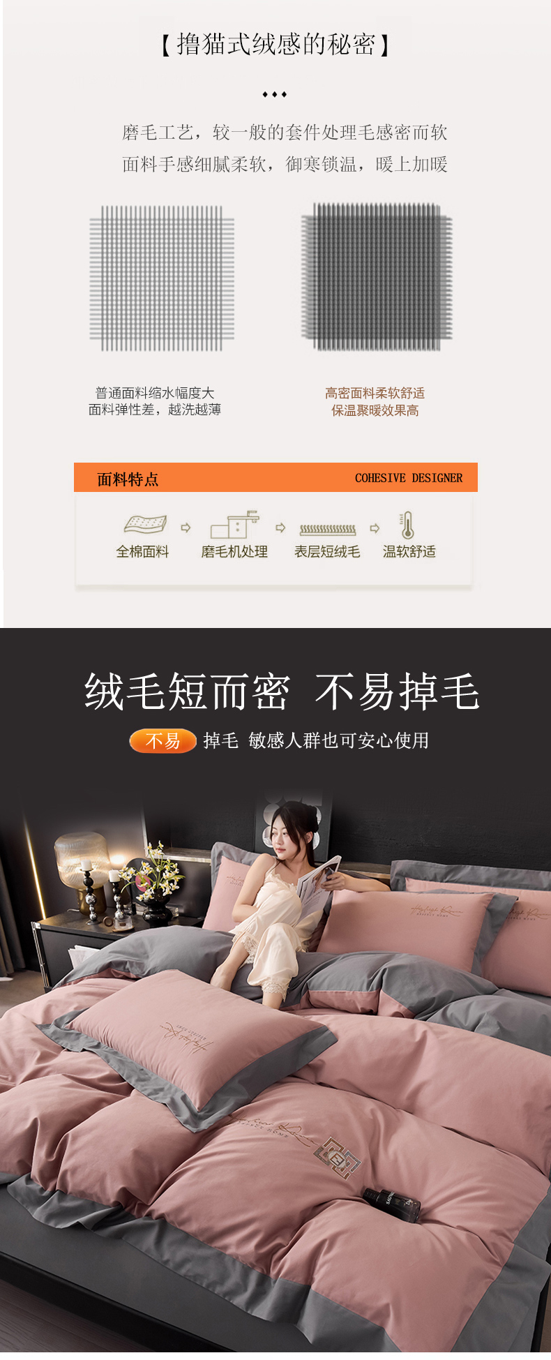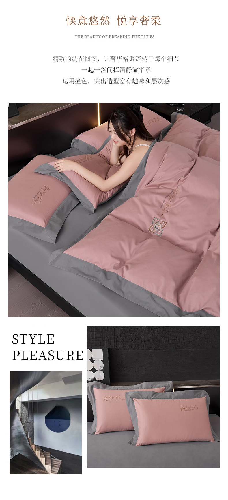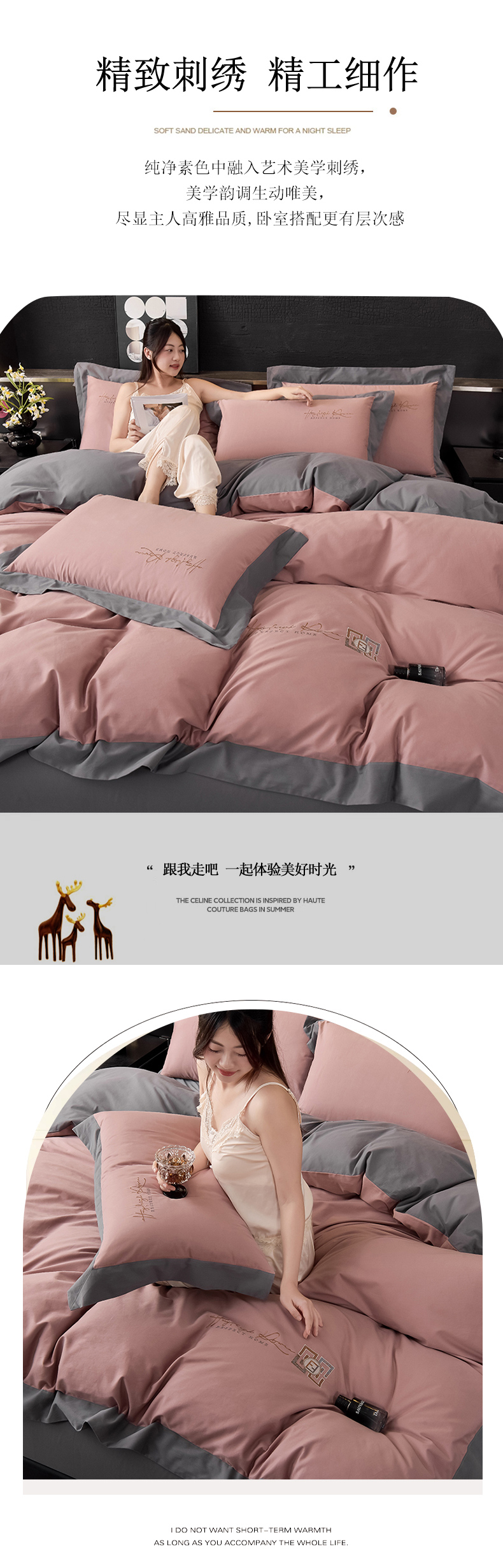 当前位置: 91家纺网 > 商品网购 > 床品套件 > 四件套 > 长绒棉四件套 > 瑞驰家纺 2024新款长绒棉磨毛四件套-斯特尔 斯特尔-玫瑰粉+深灰