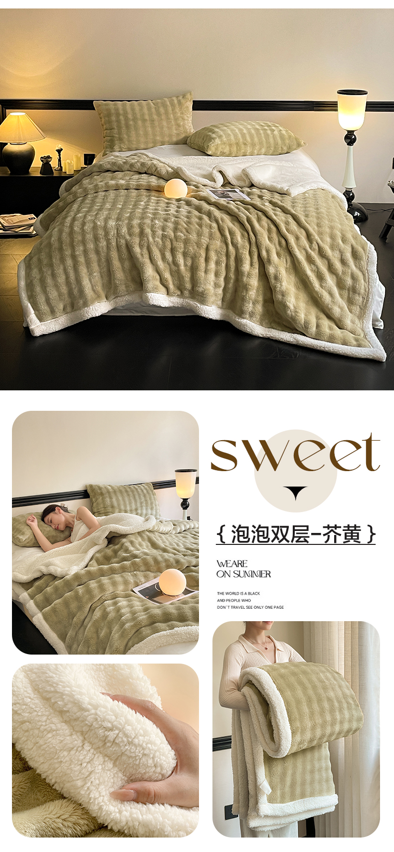 欧邦 新款仿兔毛泡泡绒羊羔绒毛毯 泡泡双层-芥黄