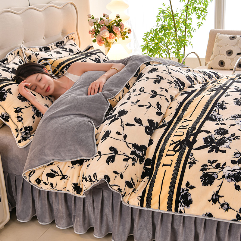 梦莱情纺2024新款8.5斤牛奶绒四件套日产12000套 繁花