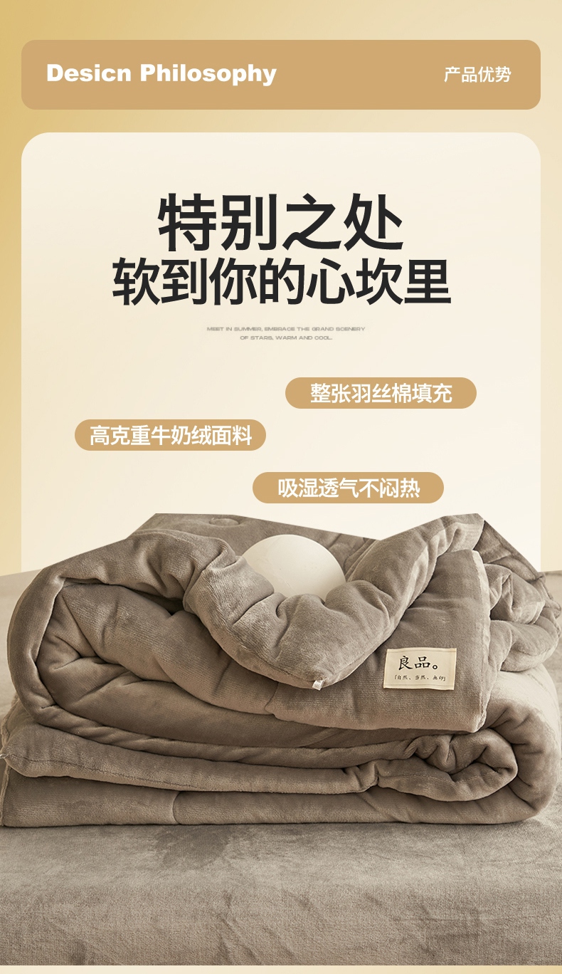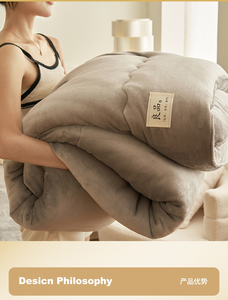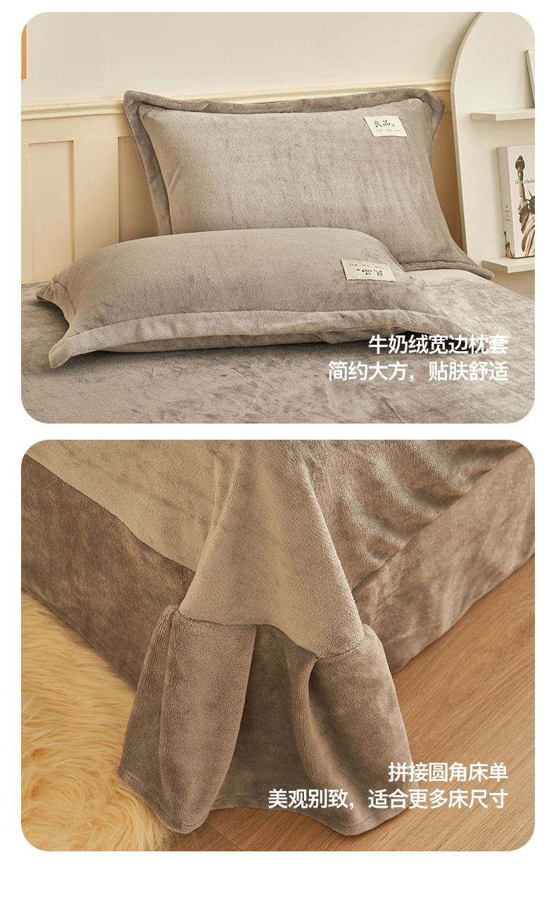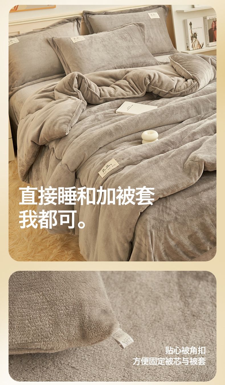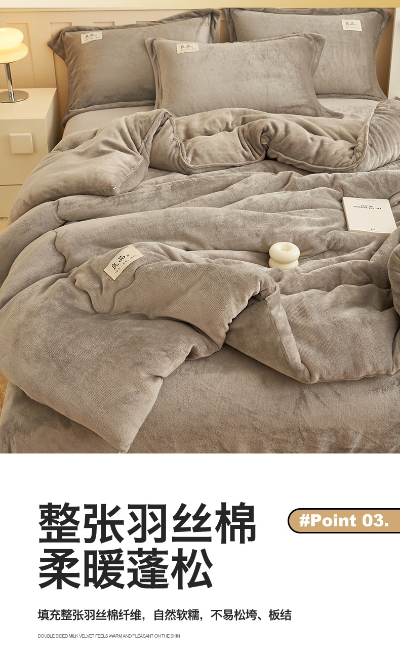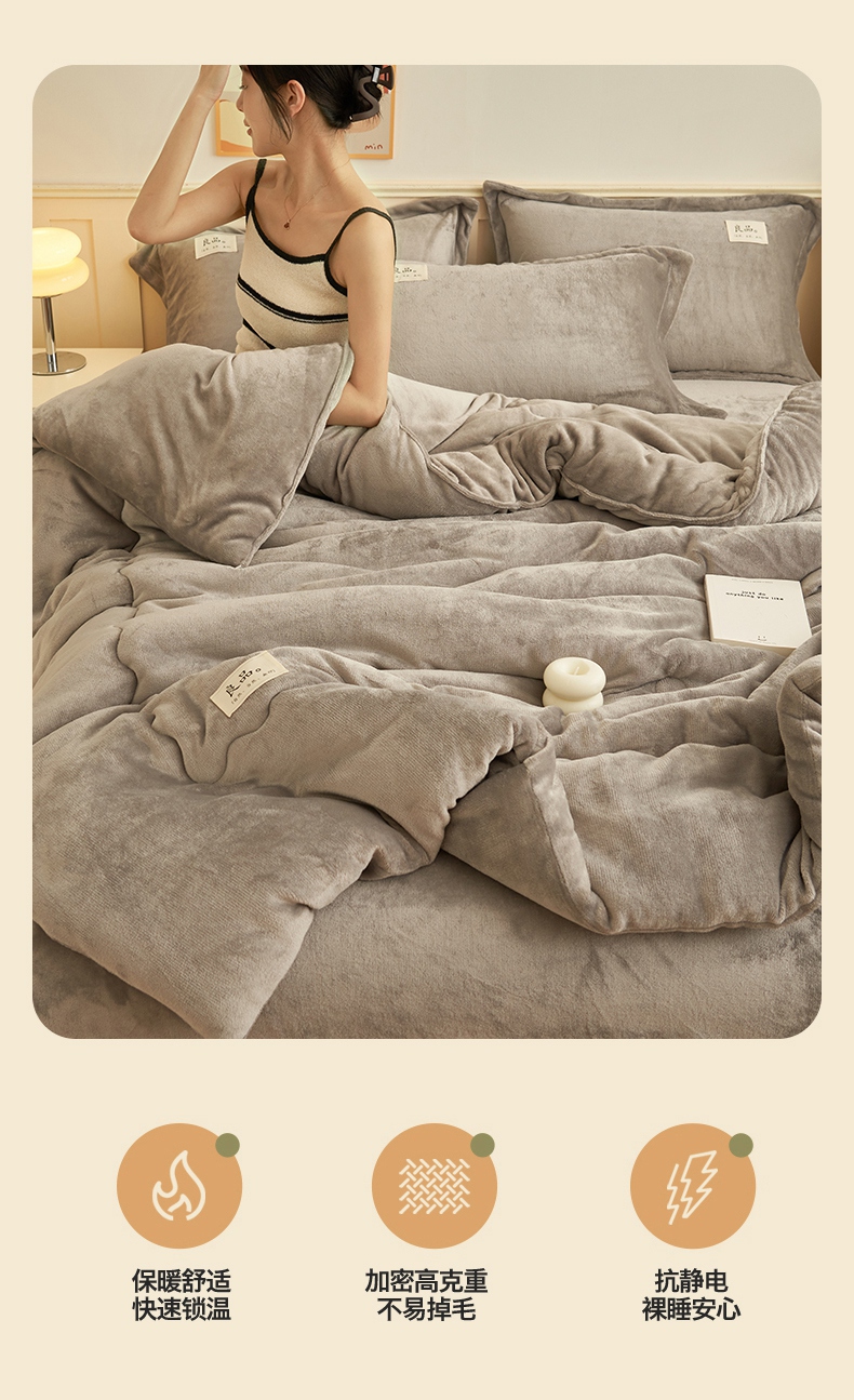 • 91家纺网 家纺一手货源 找家纺 2024新款保暖舒适牛奶绒冬被四件套 灰色