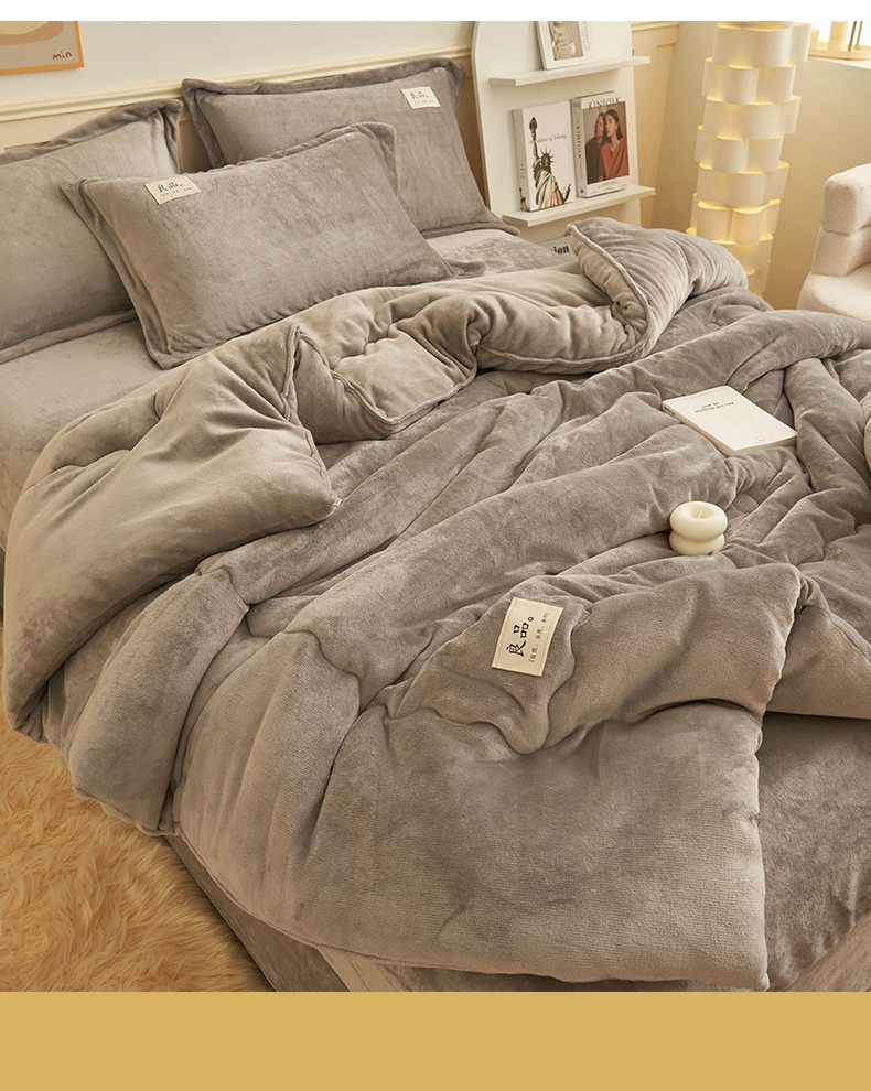 2024新款保暖舒适牛奶绒冬被四件套 灰色