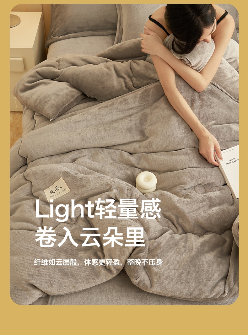 当前位置: 91家纺网 > 商品网购 > 被子 > 冬被 > 2024新款保暖舒适牛奶绒冬被四件套 灰色