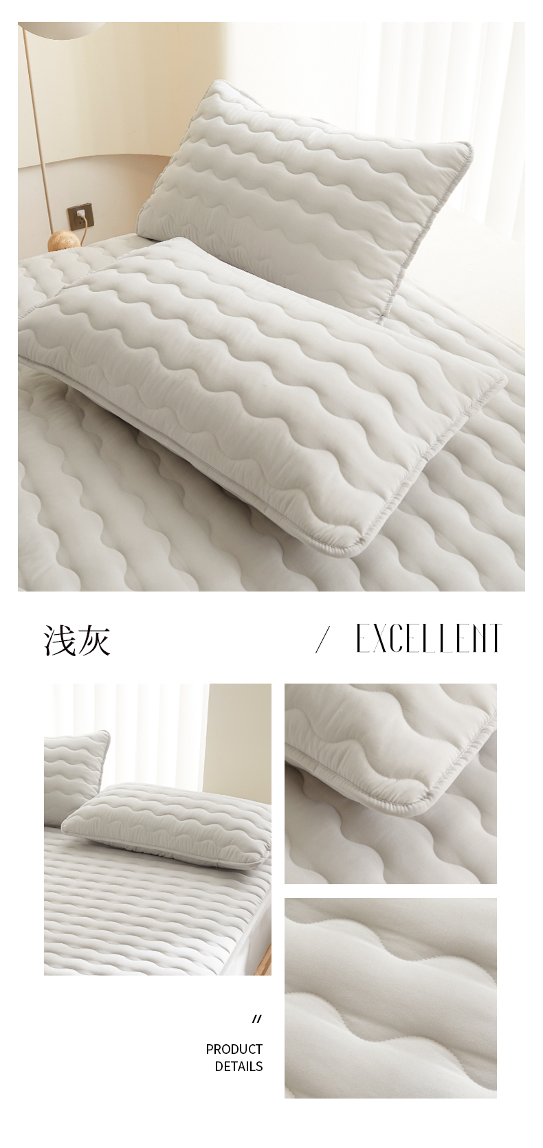 商品名称:2024新款原棉夹棉枕套-四季款 浅灰