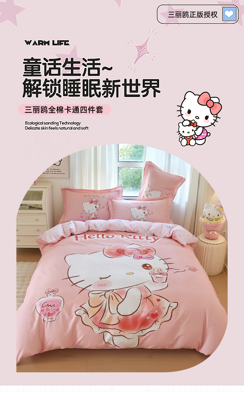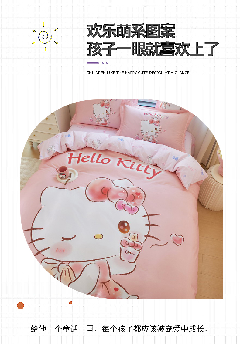 蘭菲家纺 2024新款全棉大版卡通三丽鸥四件套 甜睿
