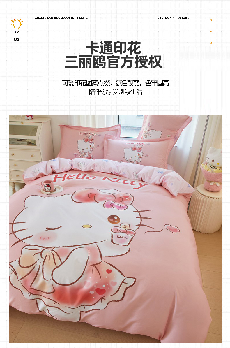 商品名称:蘭菲家纺 2024新款全棉大版卡通三丽鸥四件套 甜睿