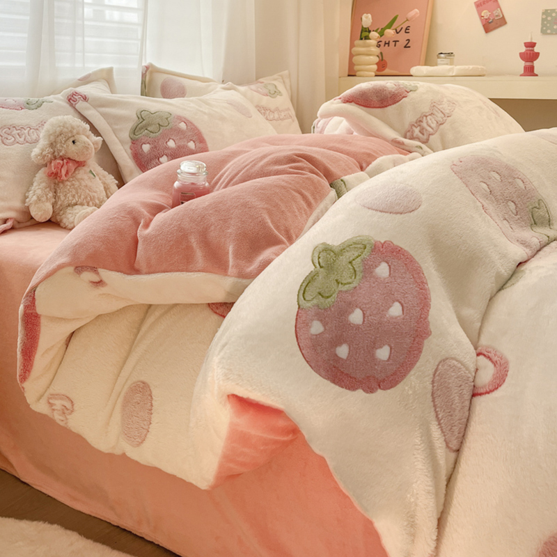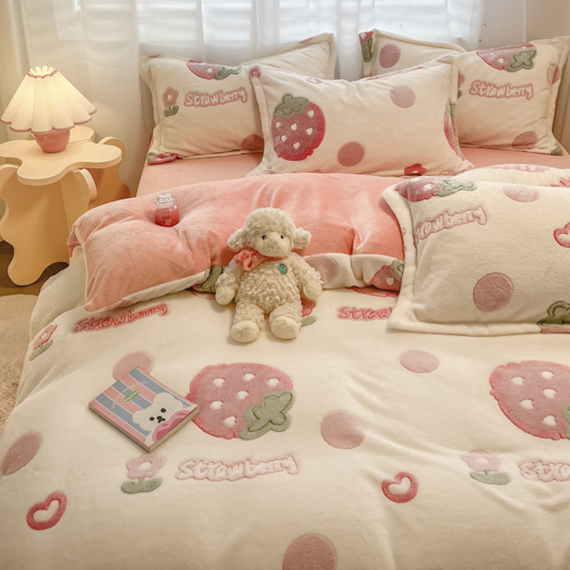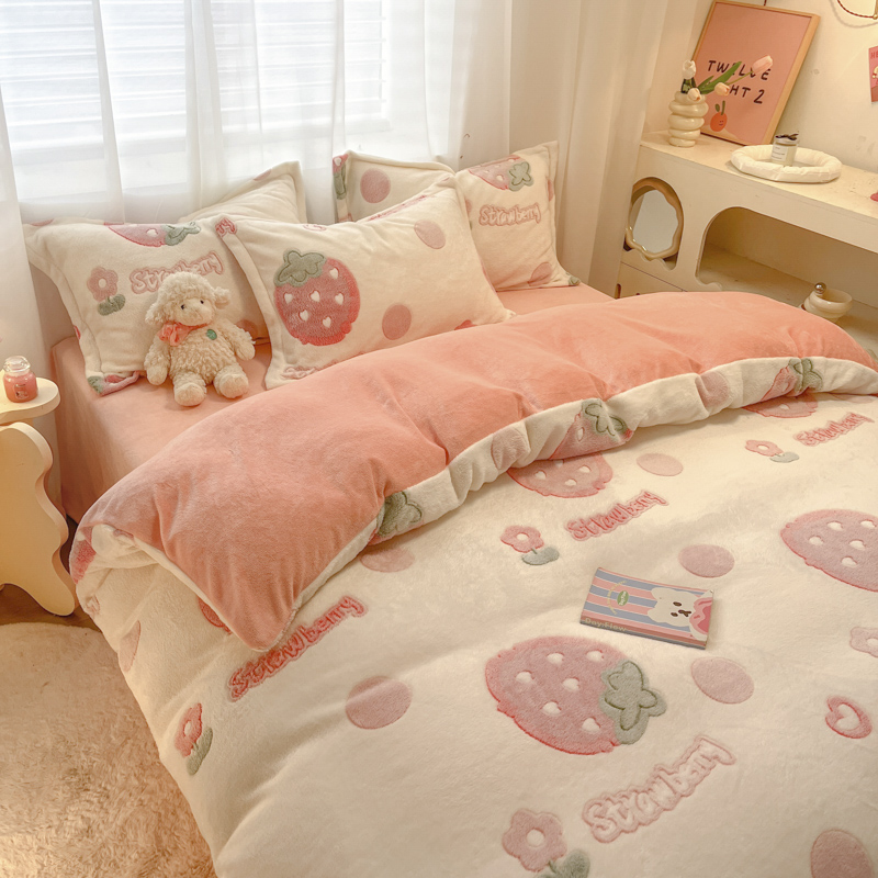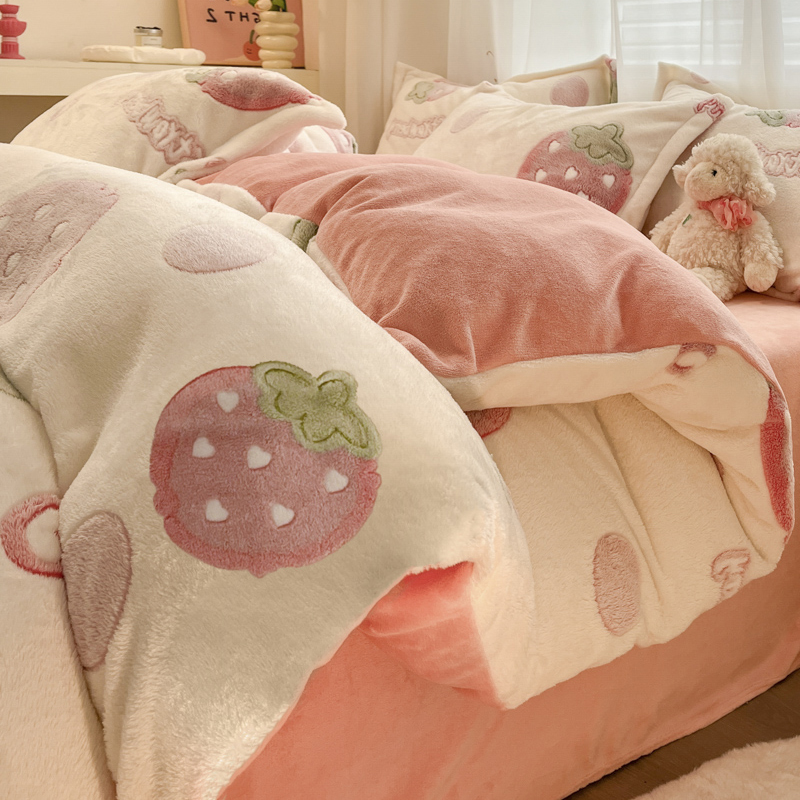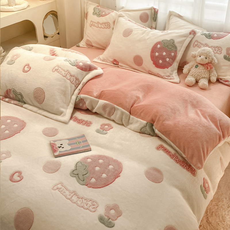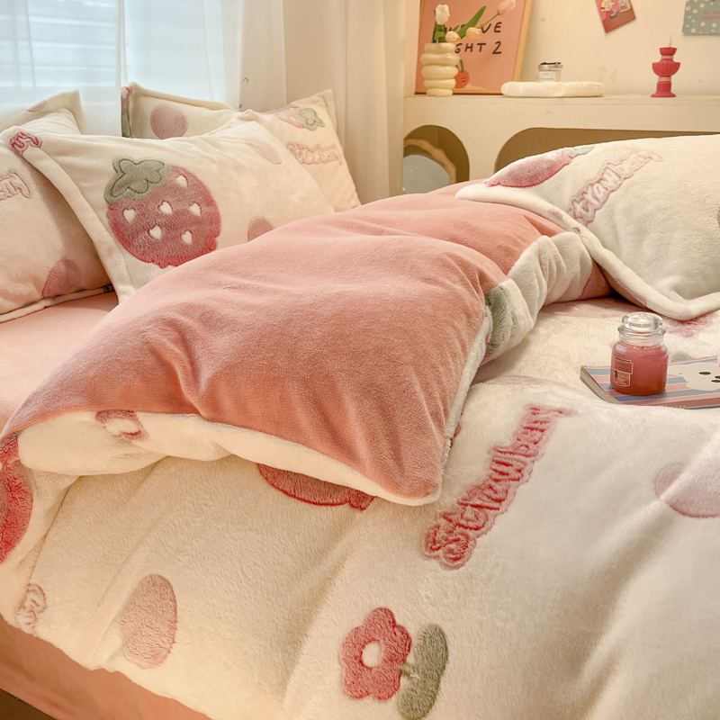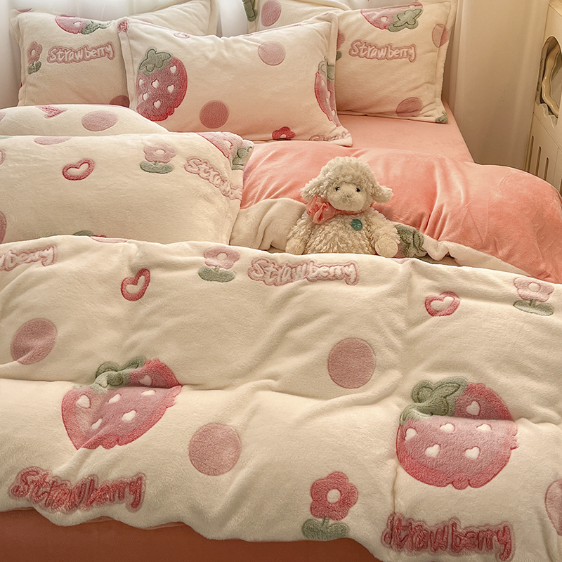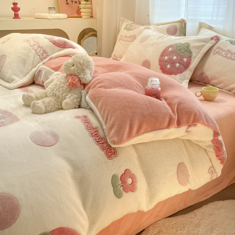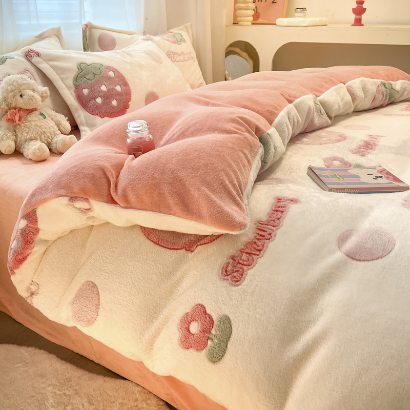 韩巢家纺 2024新款加厚雪花绒印花单件被套-风格一(提供卖家秀 ) 甜蜜