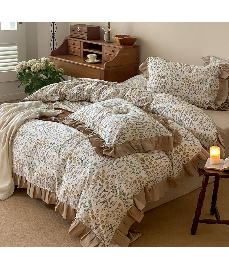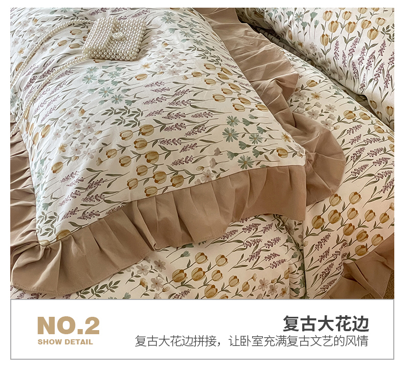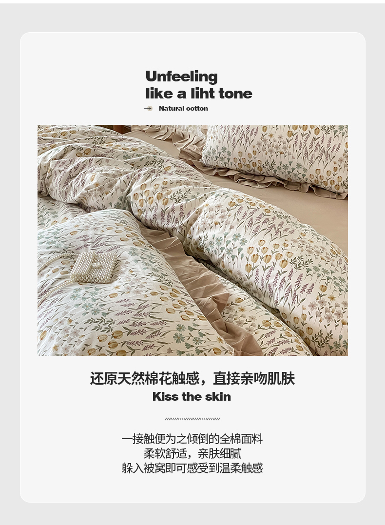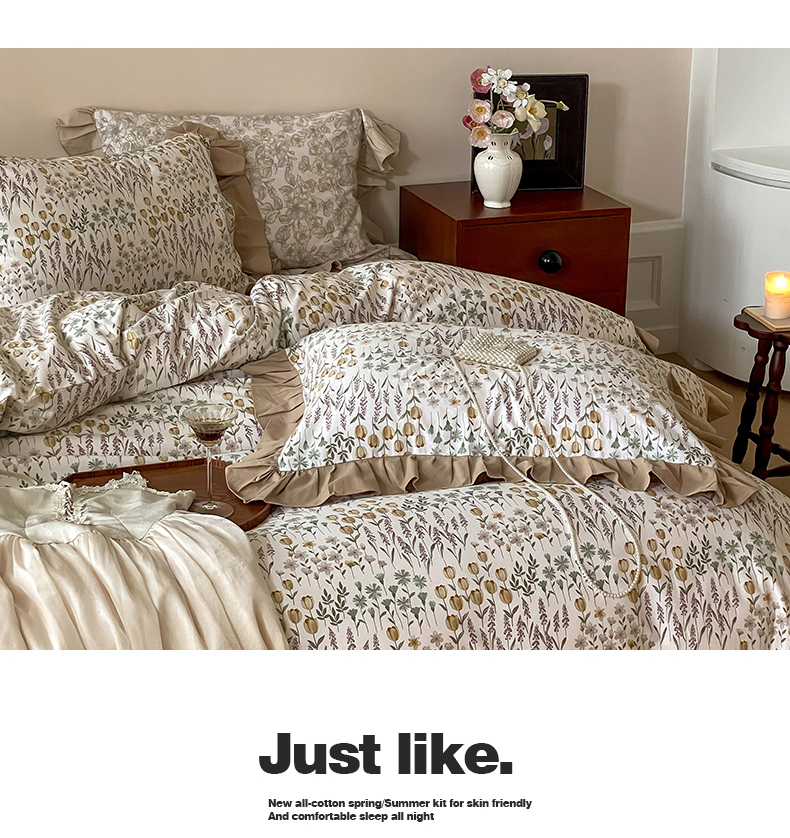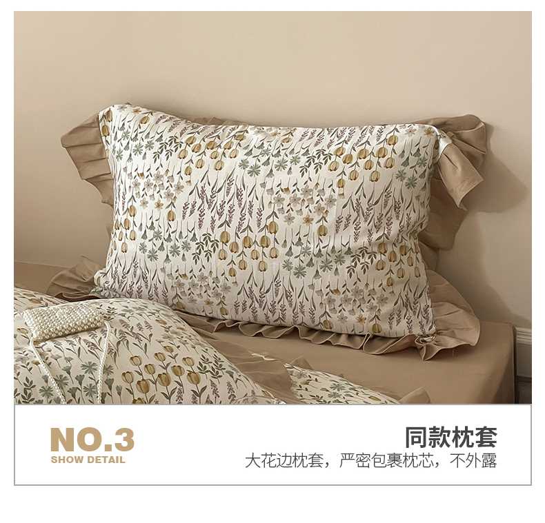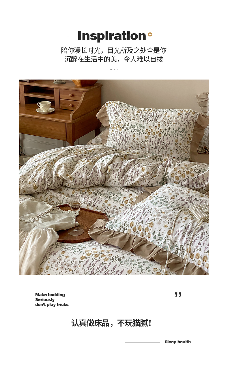 (总)窝米 2025新款数码印花100支长绒棉纯棉工艺花边款四件套-晚意,晚意