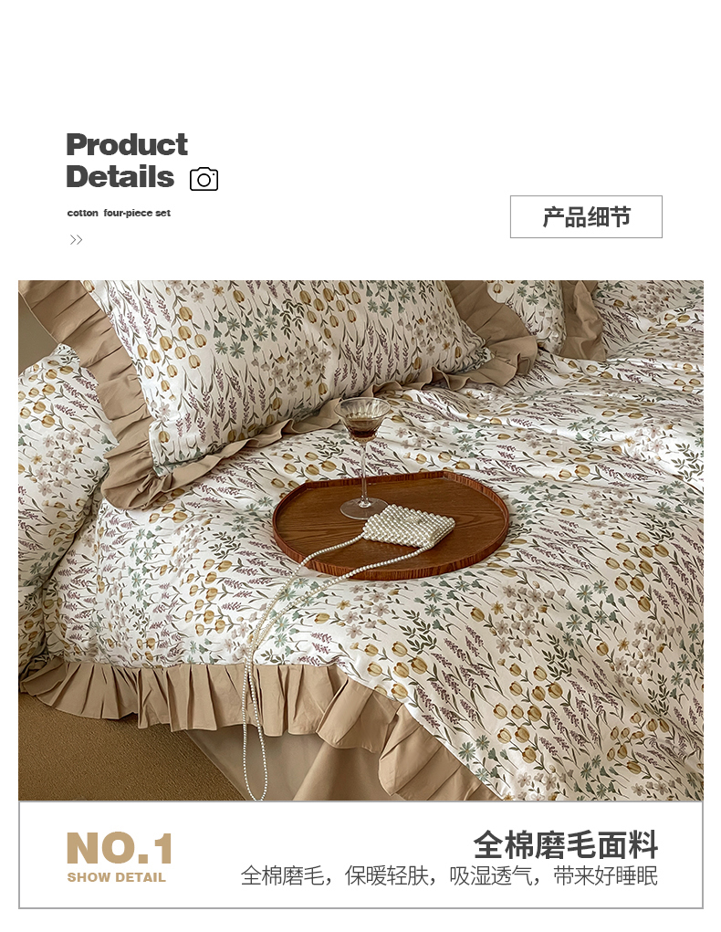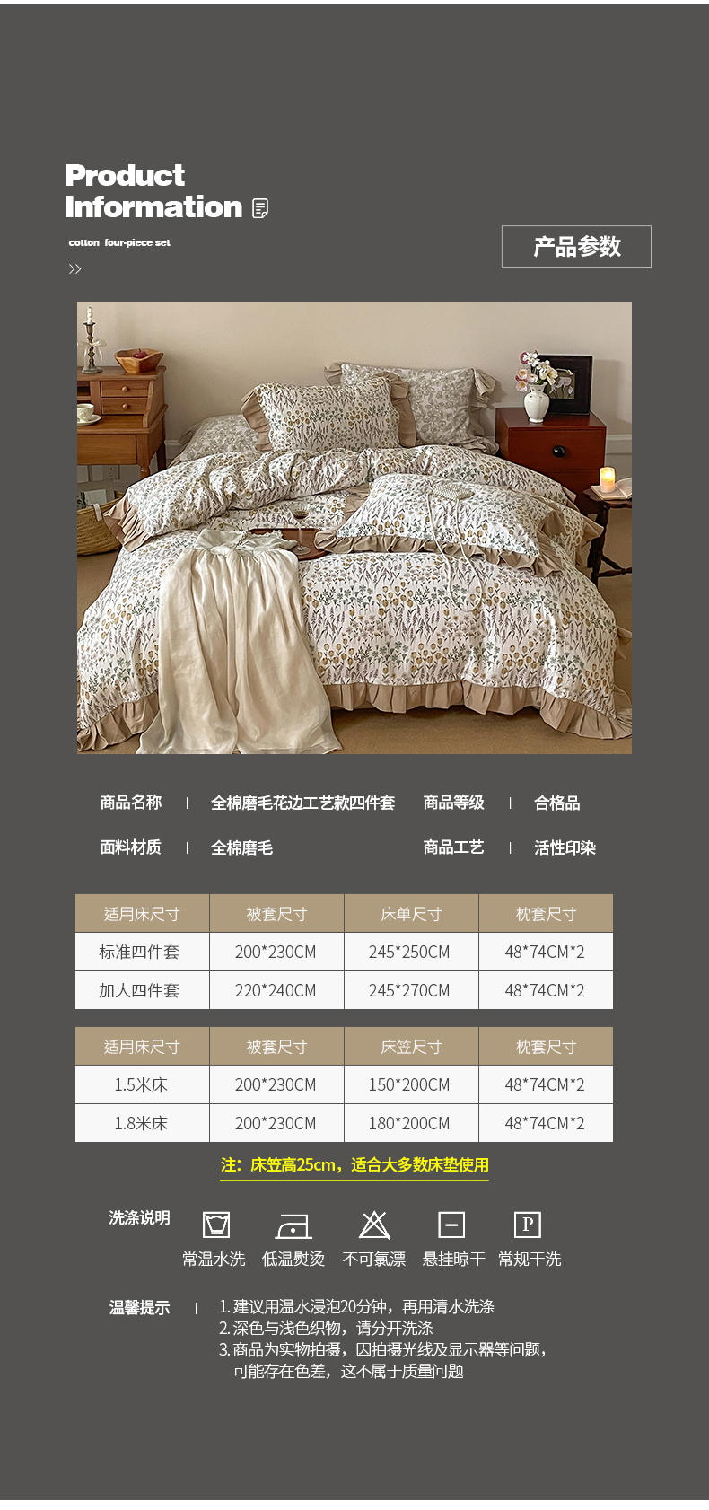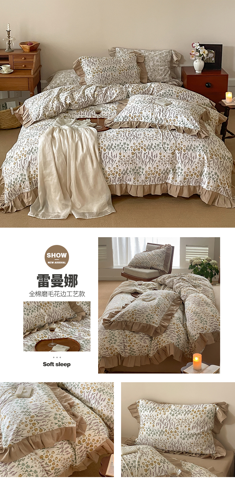 商品名称:窝米 2024新款全棉磨毛花边工艺款四件套 雷曼娜