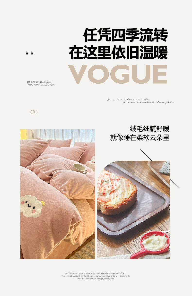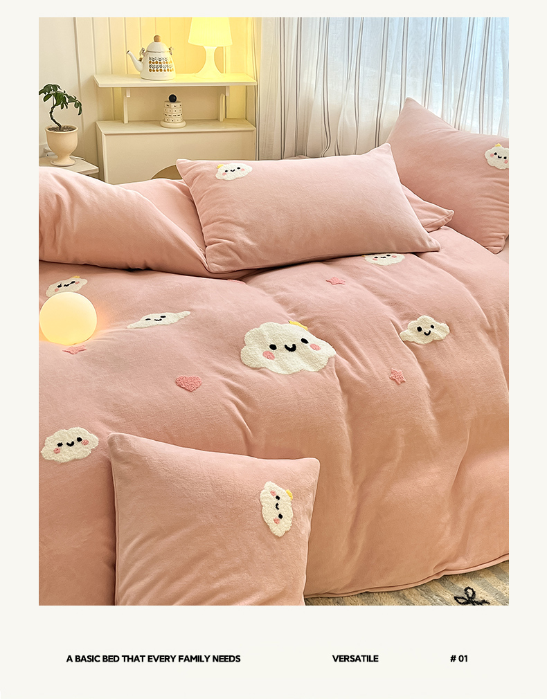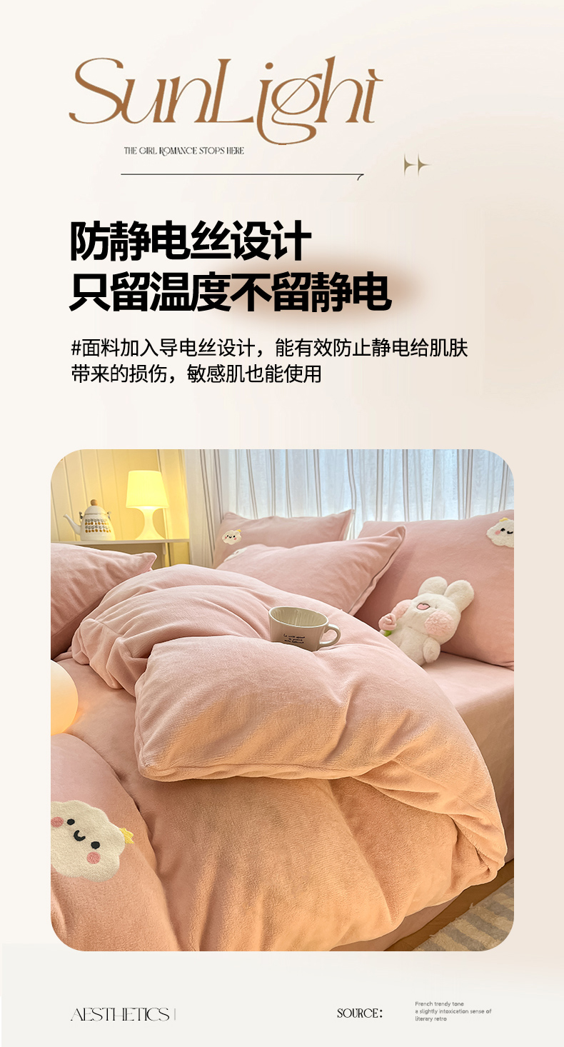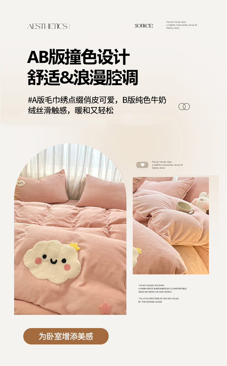 商品名称:首尔家纺 2024新款卡通牛奶绒毛巾绣四件套 云朵-粉