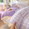 商品名称:2024新款高克重韩版牛奶绒四件套-奶油格子系列 奶油紫格