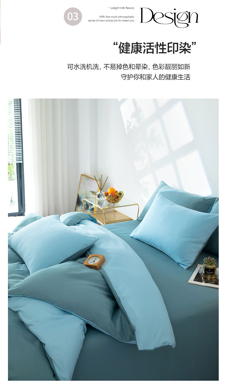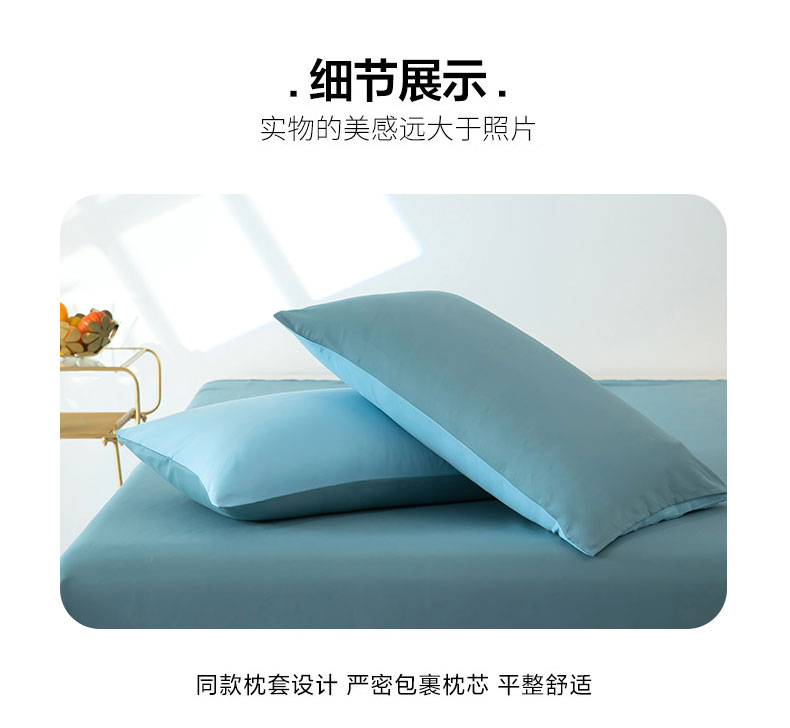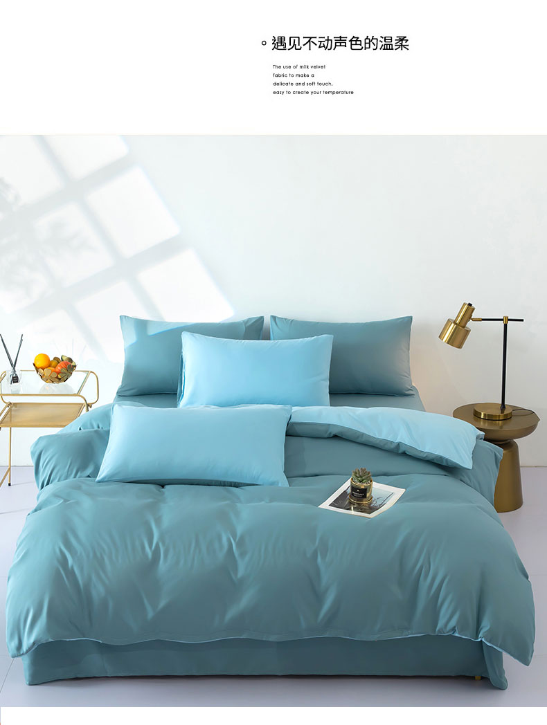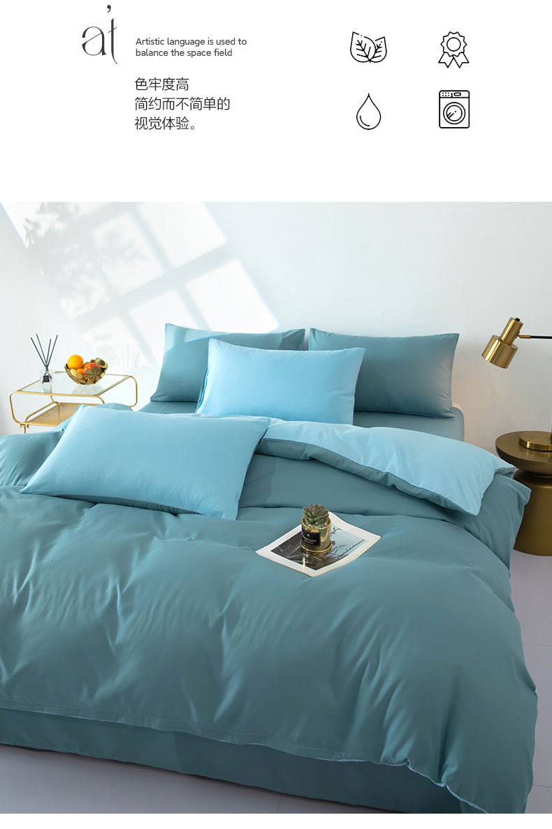 商品名称:梓依家纺 2024新款亲肤磨毛纯色拼色轻奢系列四件套 青蓝+天蓝