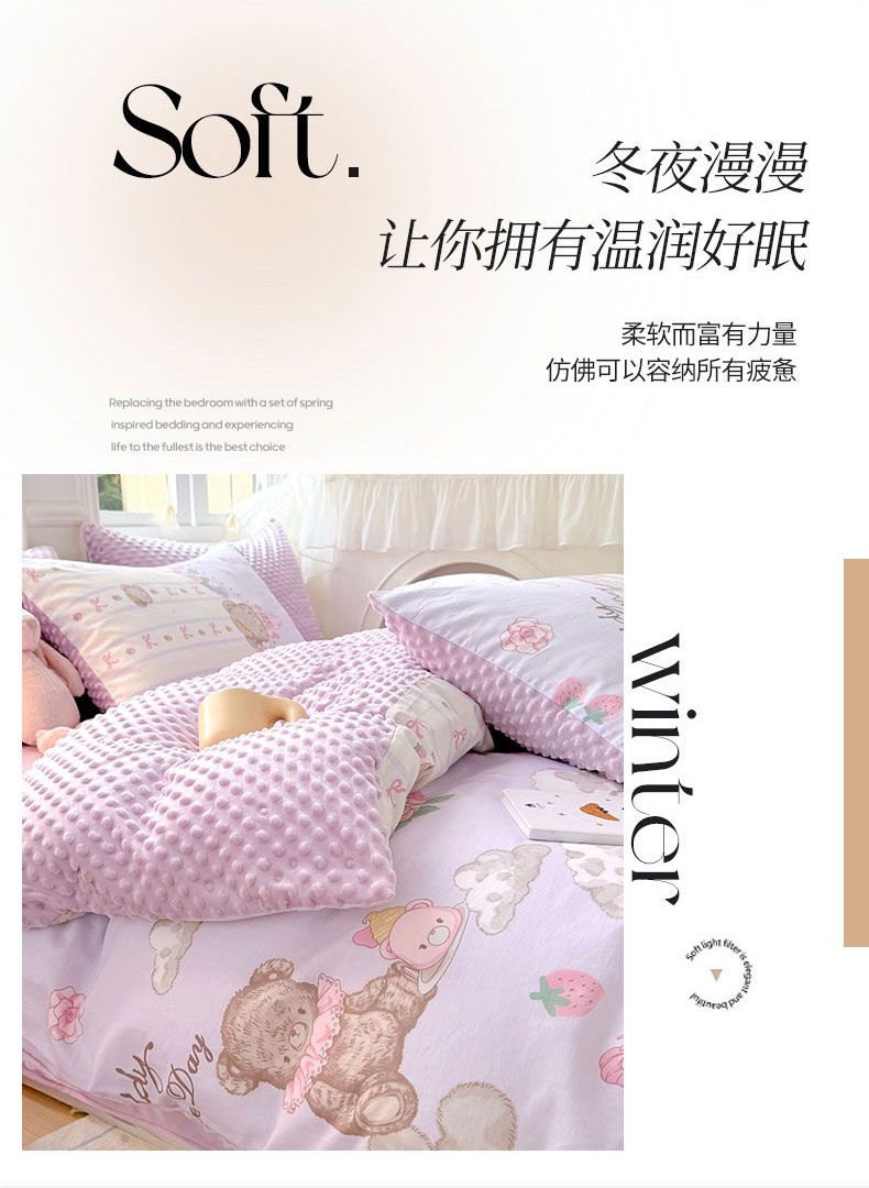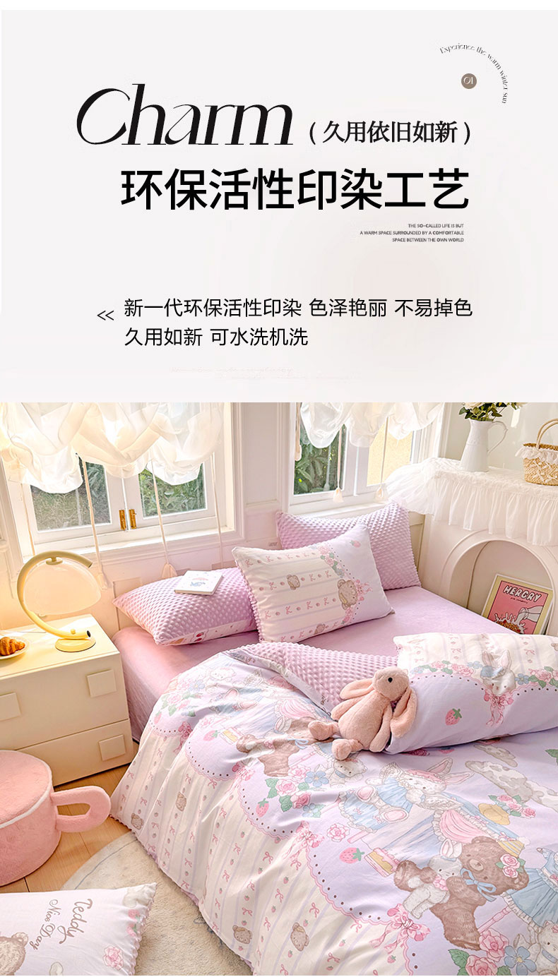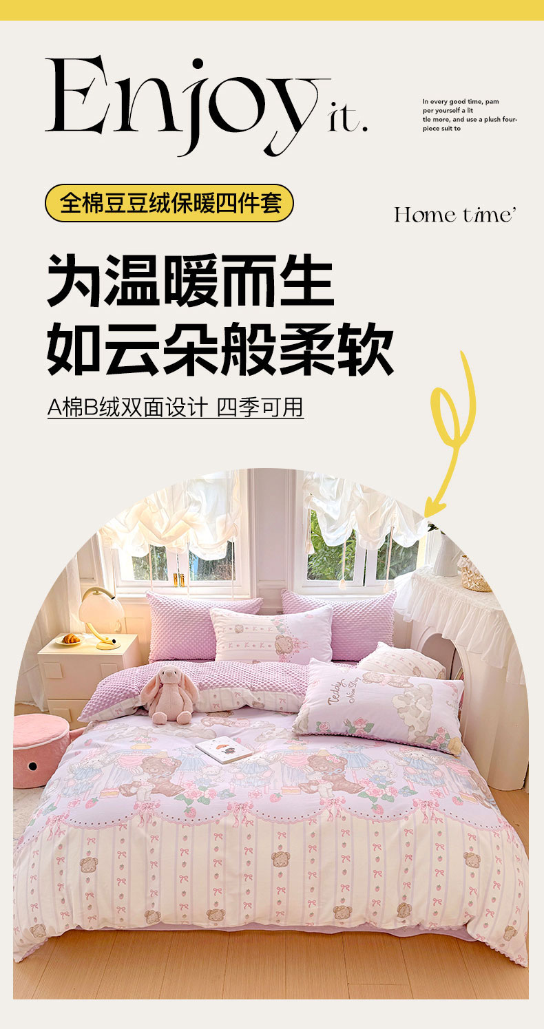 当前位置: 91家纺网 > 商品网购 > 床品套件 > 四件套 > 其它四件套 > 优迈2024新秋冬加厚保暖全棉+豆豆绒四件套婴儿绒牛奶绒豆豆单被套单人双人加大号棉加绒三件套四件套 童话镇