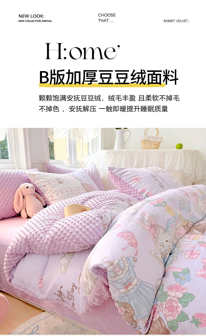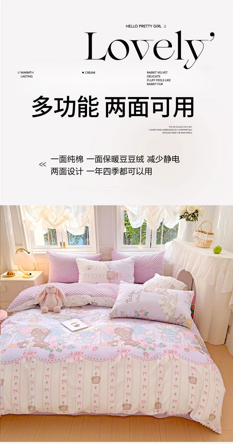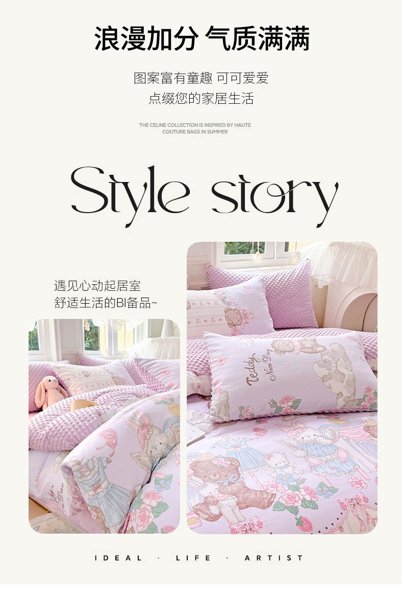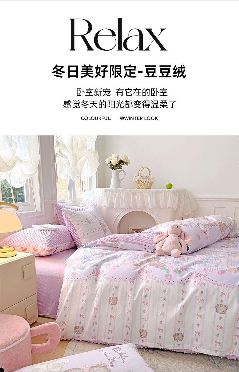 当前位置: 91家纺网 > 商品网购 > 床品套件 > 四件套 > 其它四件套 > 优迈2024新秋冬加厚保暖全棉+豆豆绒四件套婴儿绒牛奶绒豆豆单被套单人双人加大号棉加绒三件套四件套 童话镇