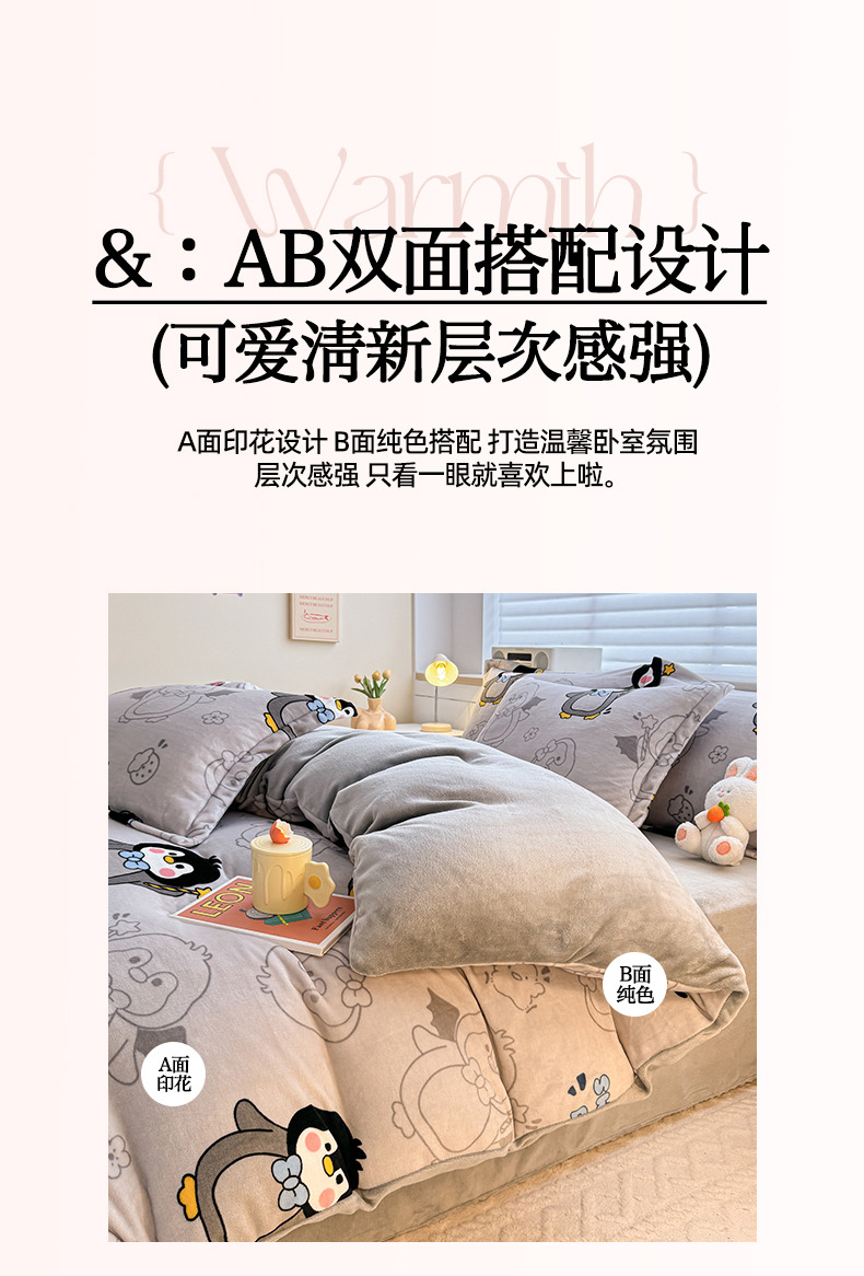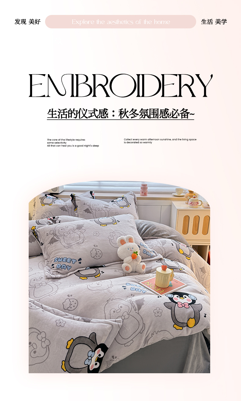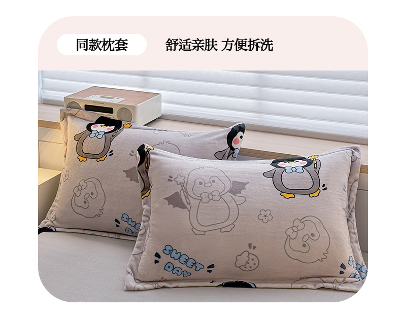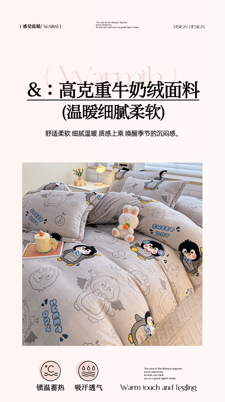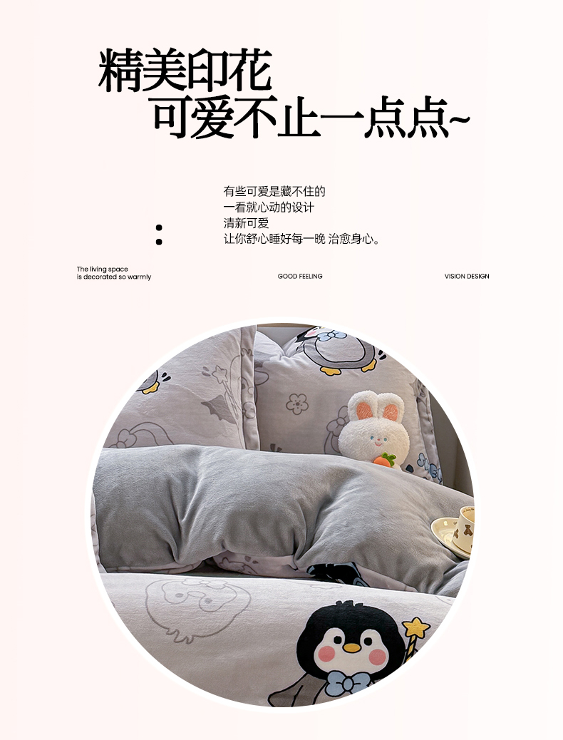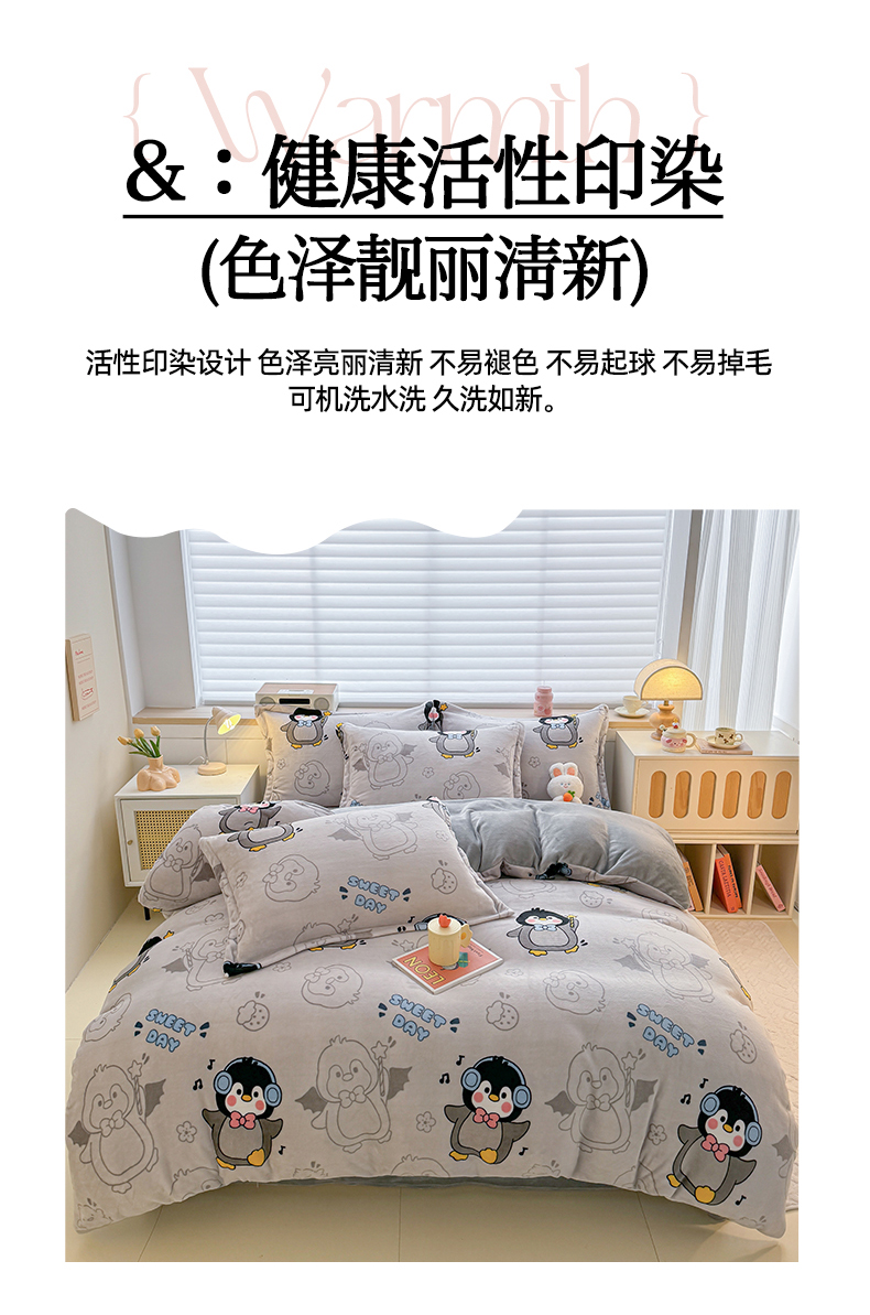 当前位置: 91家纺网 > 商品网购 > 床品套件 > 四件套 > 牛奶绒四件套 > 妖妖家纺 2024新款高克重200克印花牛奶绒四件套 音乐小企鹅