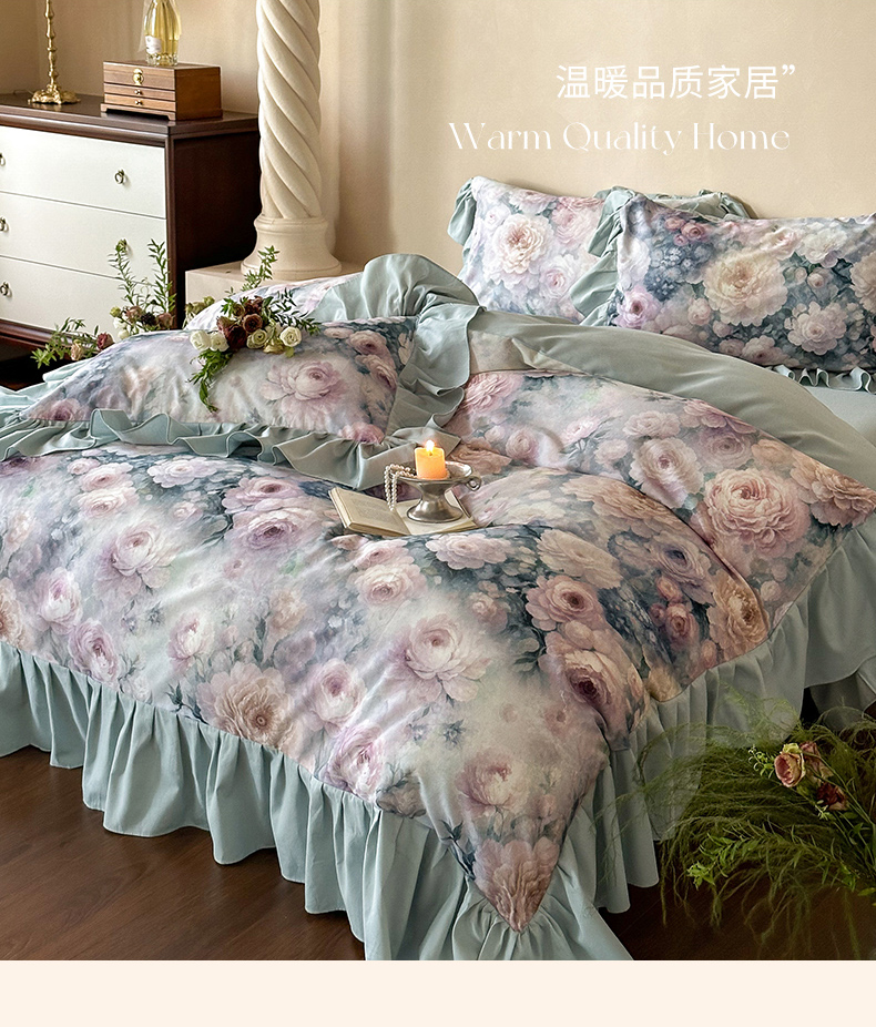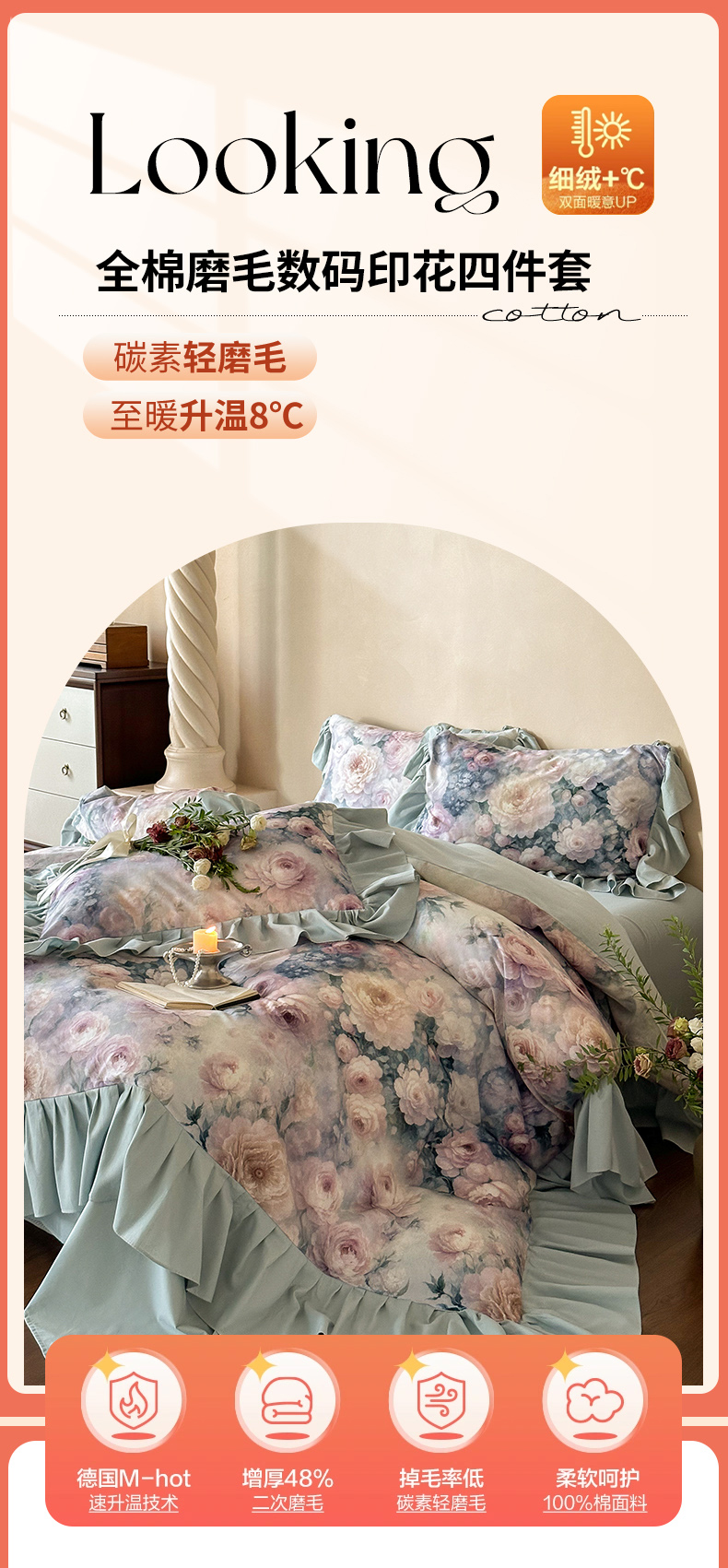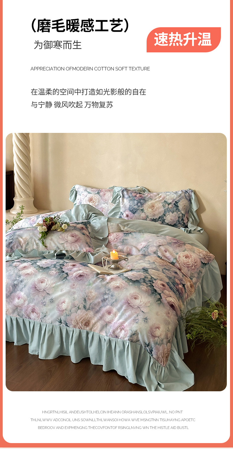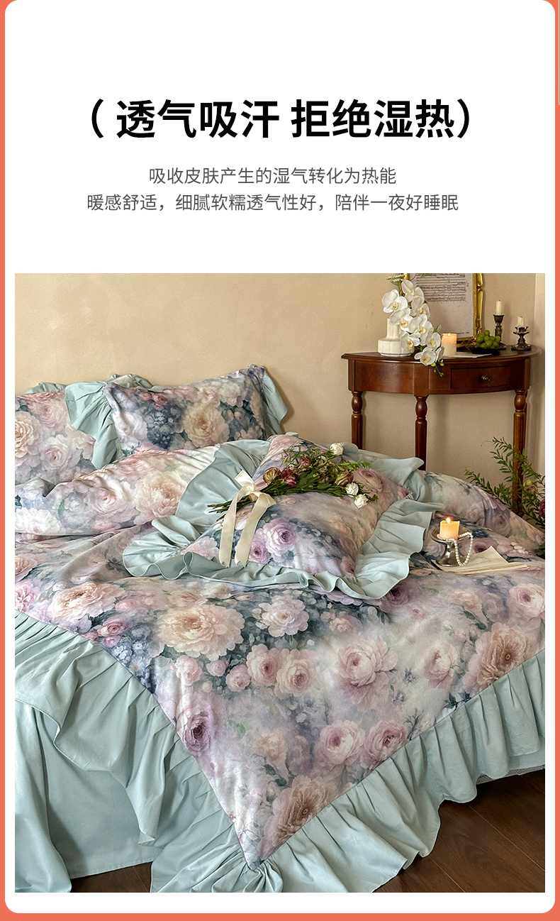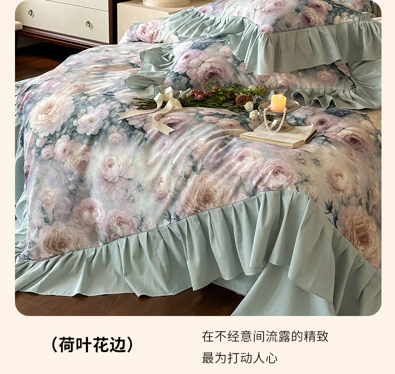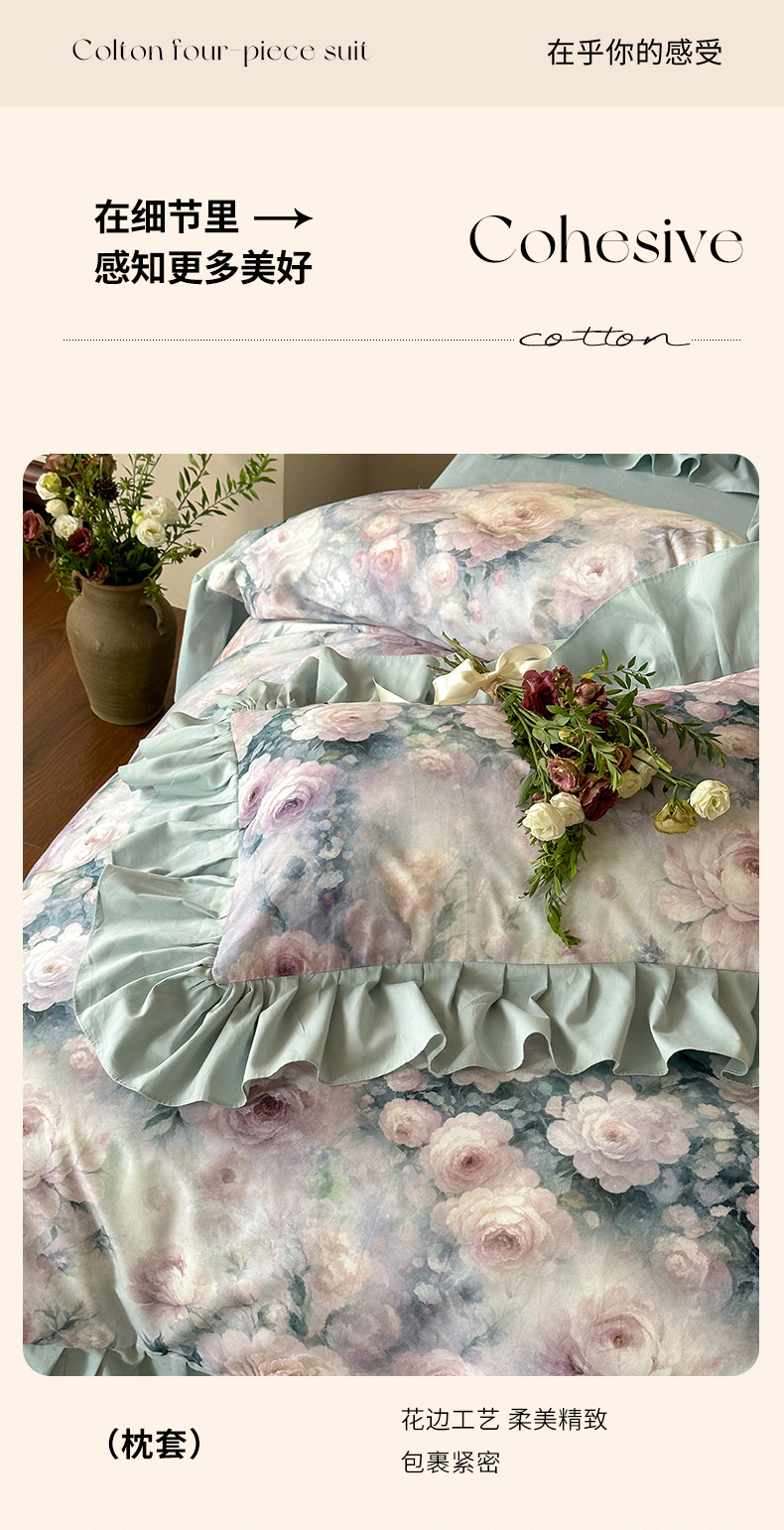 宜代光年 2024新款法式花边全棉磨毛工艺款四件套 花漾甜心-绿
