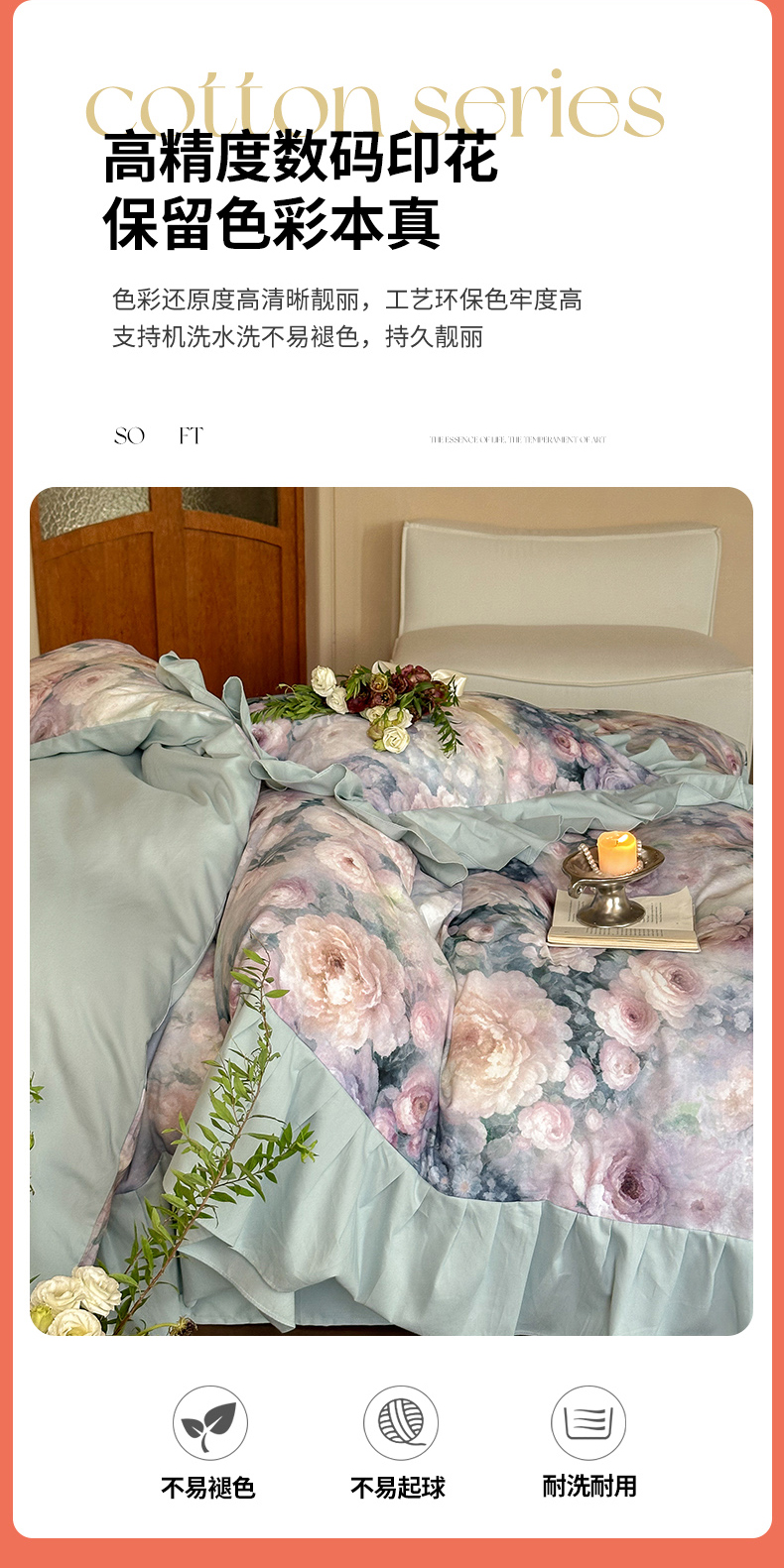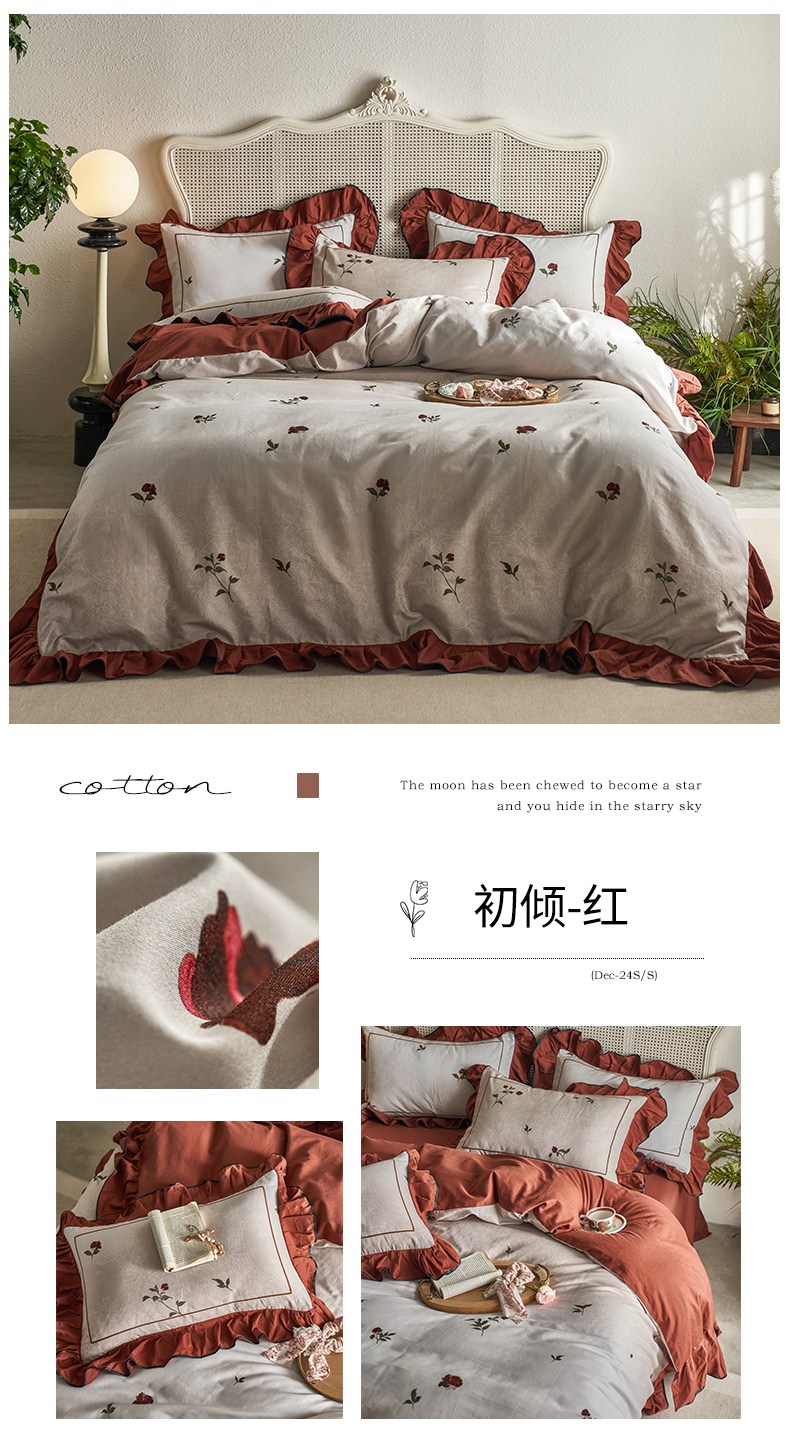 (总)宜代光年 2024新款法式花边全棉磨毛工艺款四件套,花漾甜心-淡紫,艾洛蒂-咖,艾洛蒂-绿,初倾-红,初倾-绿,花漾甜心-绿