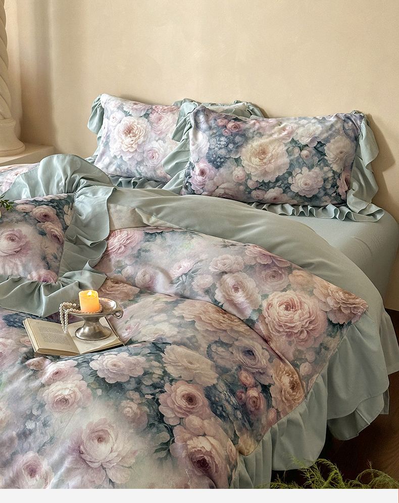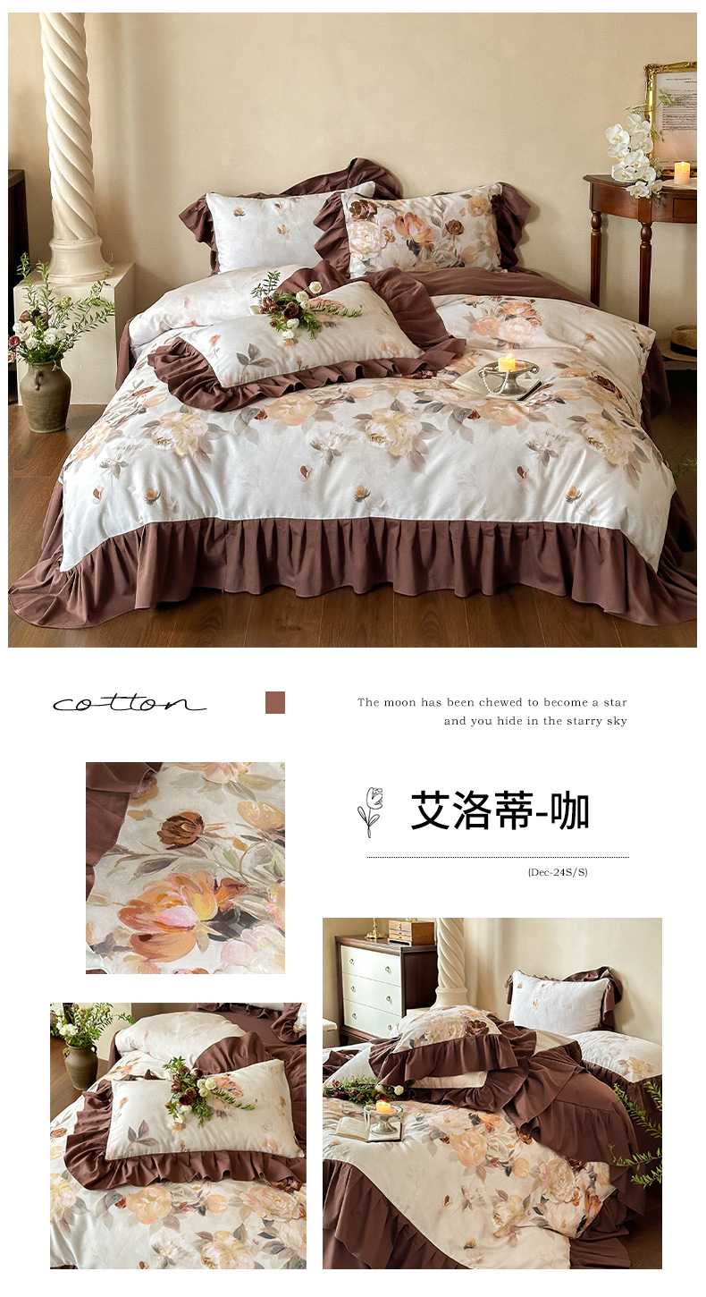 (总)宜代光年 2025新款小米貂法式中古风印花四件套,墨染花簇,蝶语,粉雾渐染,灰韵层叠,墨韵花影,秋华,心上玫瑰,棕影绘花