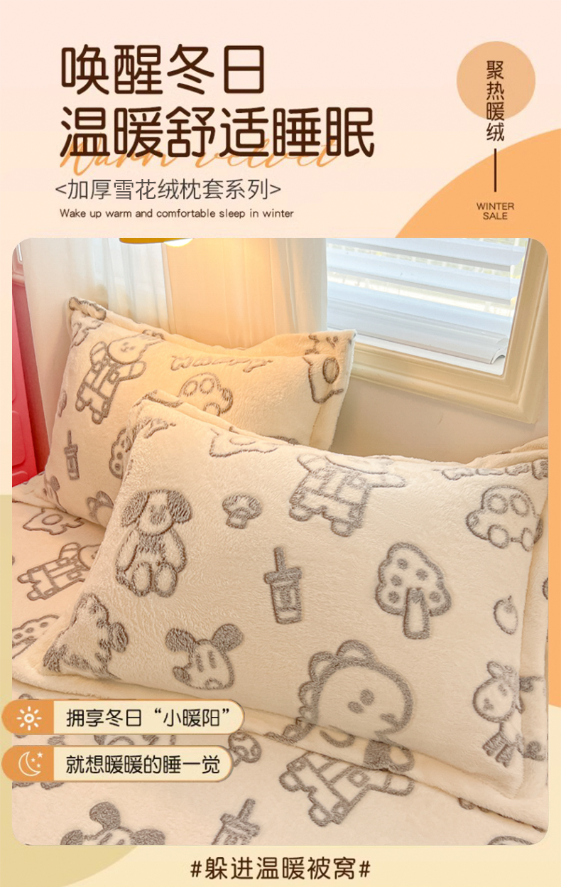 韩巢家纺 2024新款雪花绒枕套一对装 灰色轨迹