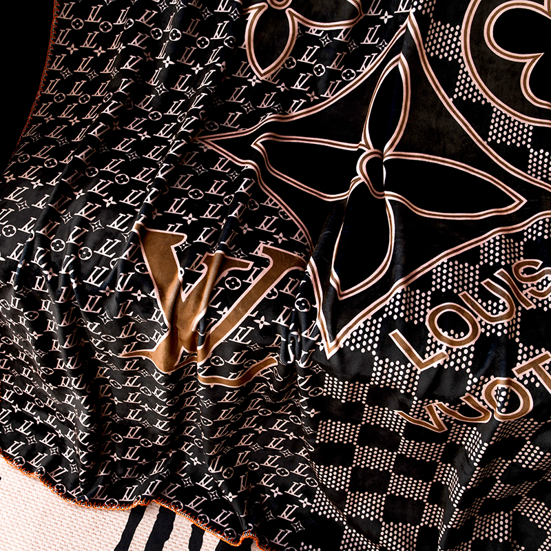 爵仕 2024高档锦狐绒毛毯复合毯奢华复古绒毯爱马风格 LV