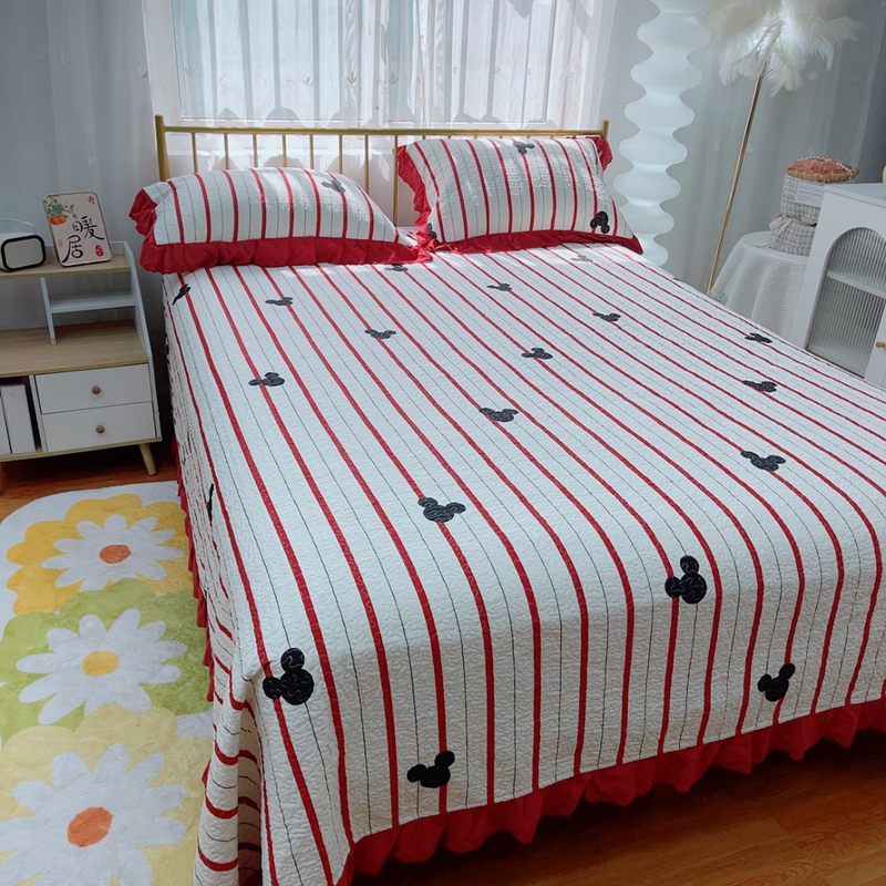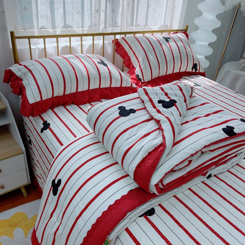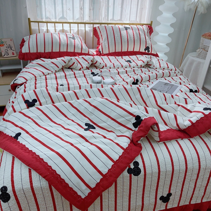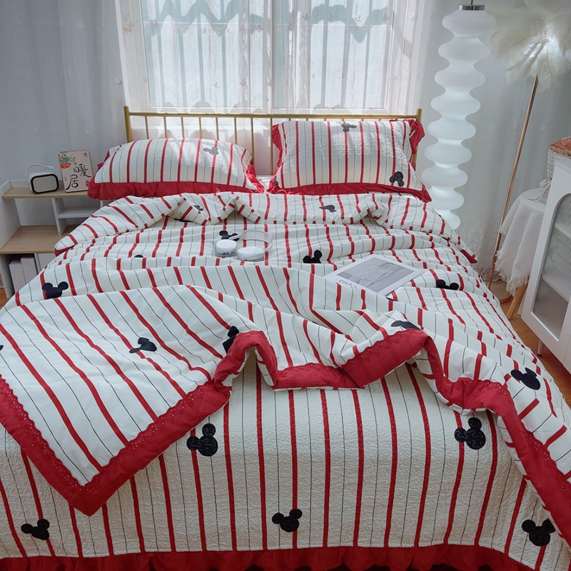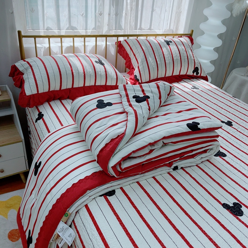 商品名称:暖居 2024新款春秋被床盖四件套高温砂洗棉花床盖三件套 酒红米奇
