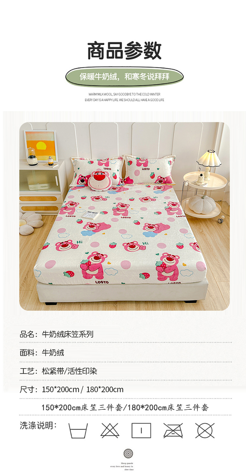 商品名称:卡普二店 2024新款牛奶绒印花单床笠 萌趣熊宝